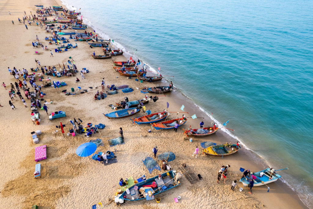 ใครตื่นเช้าบอกเลยว่าคุ้ม! เพราะช่วงประมาณ 05:00 – 07:00 น. บริเวณริมหาดจอมเทียนจะมีชาวประมงพื้นบ้านนำเรือมาจอดเทียบฝั่ง พร้อมตั้งแผงขายอาหารทะเลกันสดๆ บนหาดทรายเลยค่ะ ฟีลคล้ายๆ ท่าเรือประมงบางเสร่ แต่เดินทางง่ายกว่า กุ้ง หอย ปู ปลา หมึก คือดิ้นกระแด่วๆ ราคาดีงามมาก ซื้อไปทำปิ้งย่างที่พูลวิลล่าคือที่สุดของความฟิน!