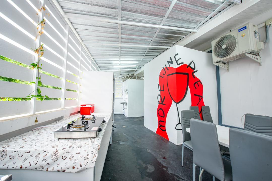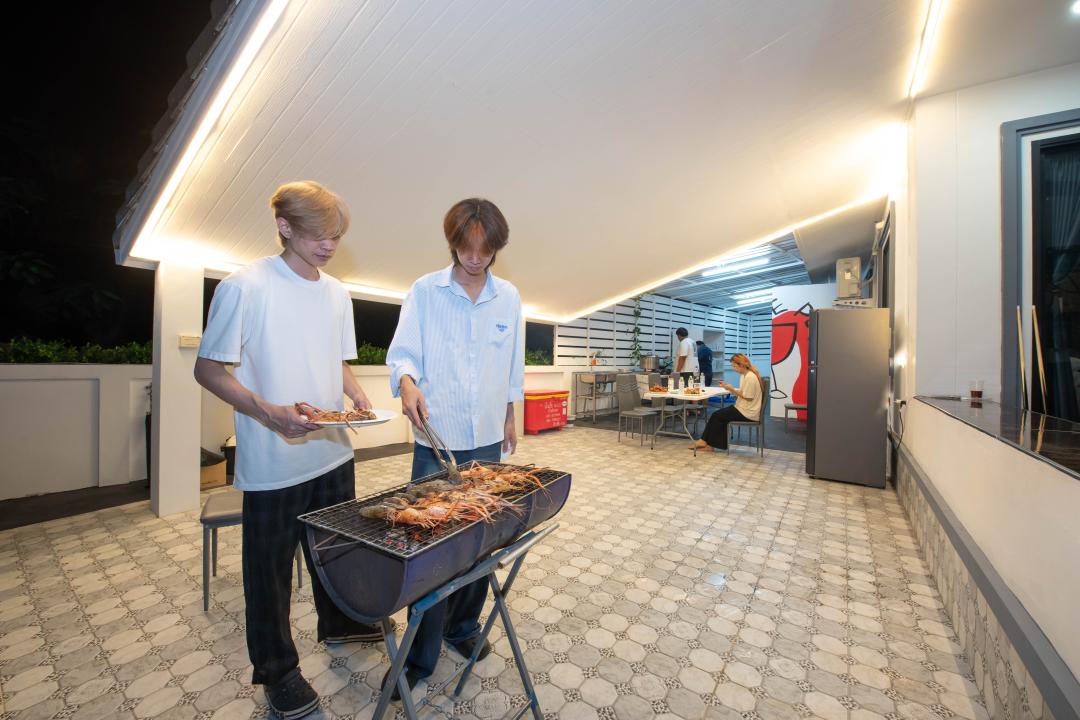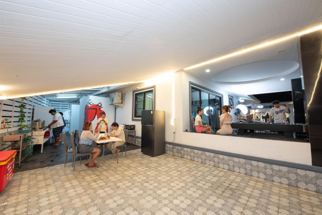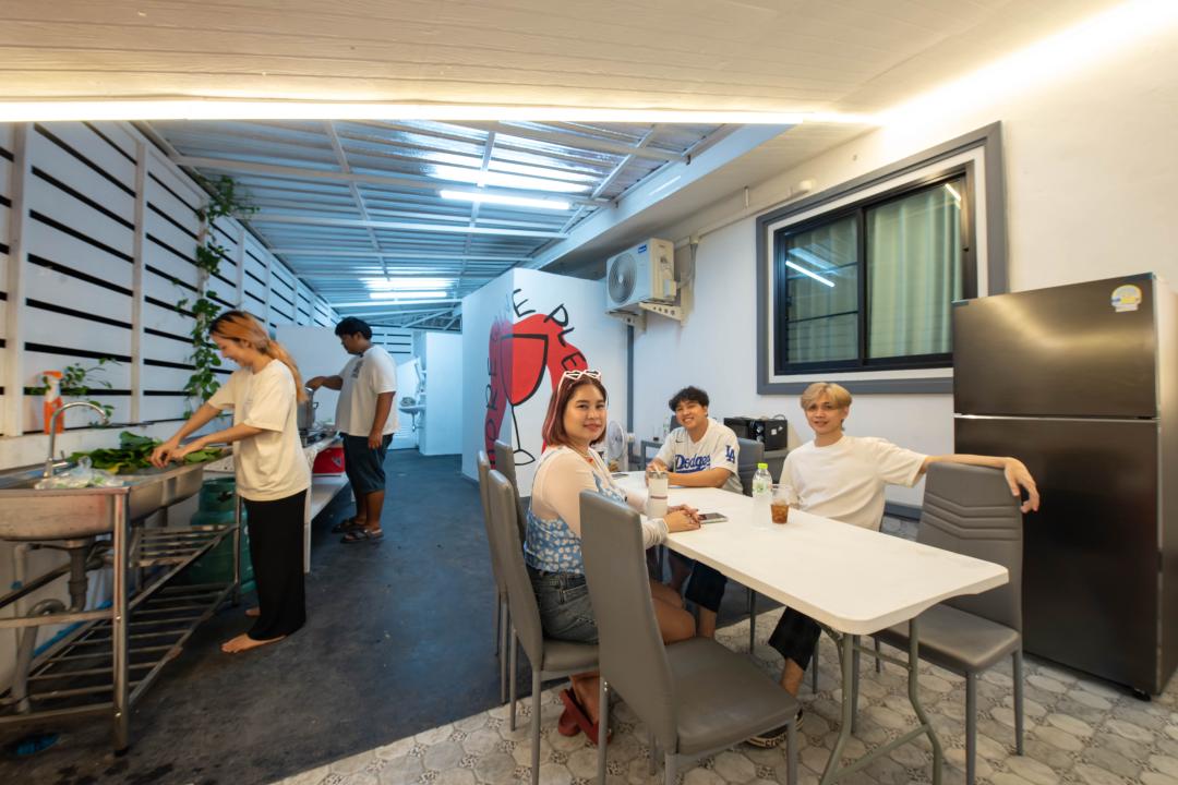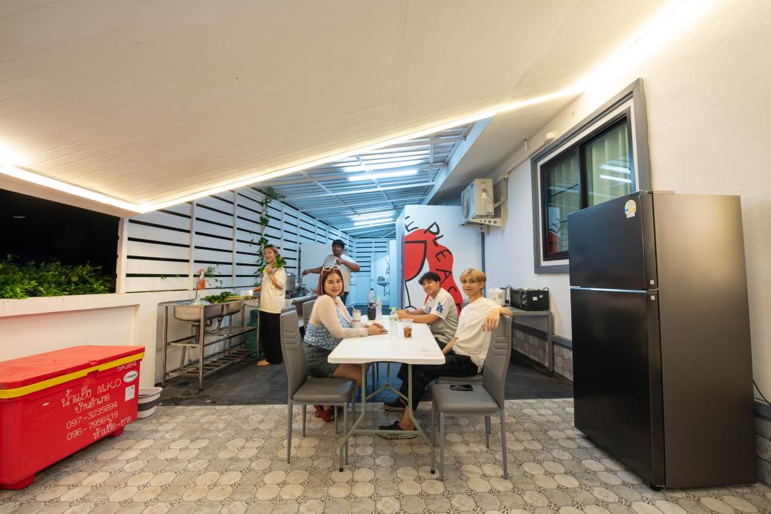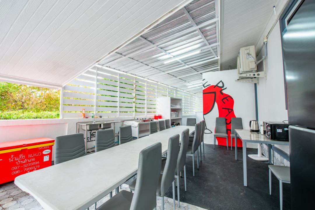 -เป็นครัวไทย อุปกรณ์เครื่องครัวครบครัน เช่น หม้อ กระทะ จานชาม ช้อน แก้วน้ำ เขียง มีด หม้อหุงข้าว ครก เครื่องปั่น ไมโครเวฟ เตาปิ้งขนมปัง ซึ้ง ถังน้ำแข็ง