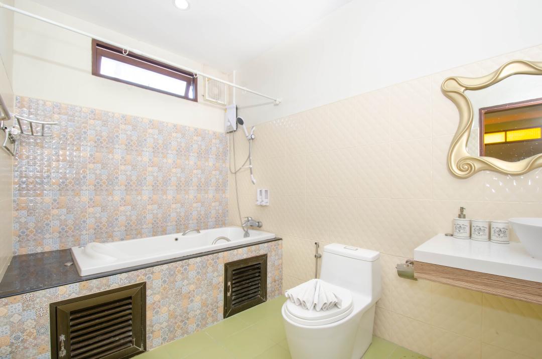 ชั้นที่ 2 ห้อง 7-8 มีเตียง 6 ฟุต เตียงเสริม 3.5 ฟุต ตู้เสื้อผ้าและอ่างจากุชชี่
