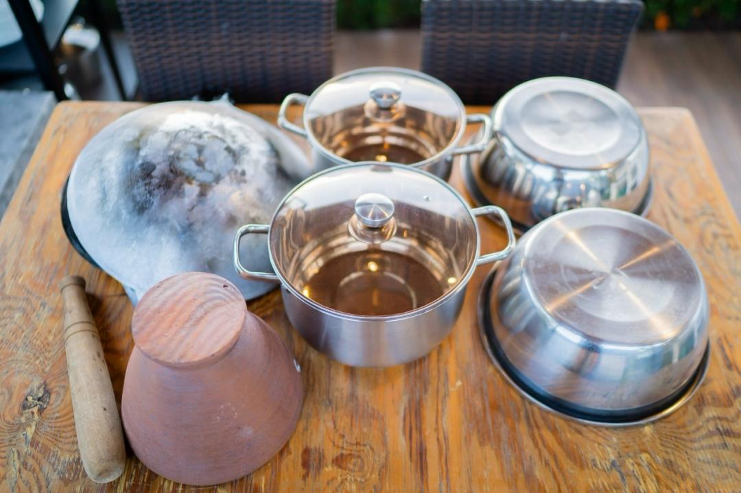กะทะ หม้อ หม้อหุงข้าว จาน ชาม ตะหลิว ช้อนส้อม ที่คีบ ไมโครเวฟ แก้ว ถ้วย ถ้วยน้ำจิ้ม มีด เขียง ครก ช้อนเล็ก ช้อนกลาง กะละมัง กาน้ำร้อน ทัพพี ซึ้ง หม้อนึ่ง เครื่องปิ้งขนมปัง