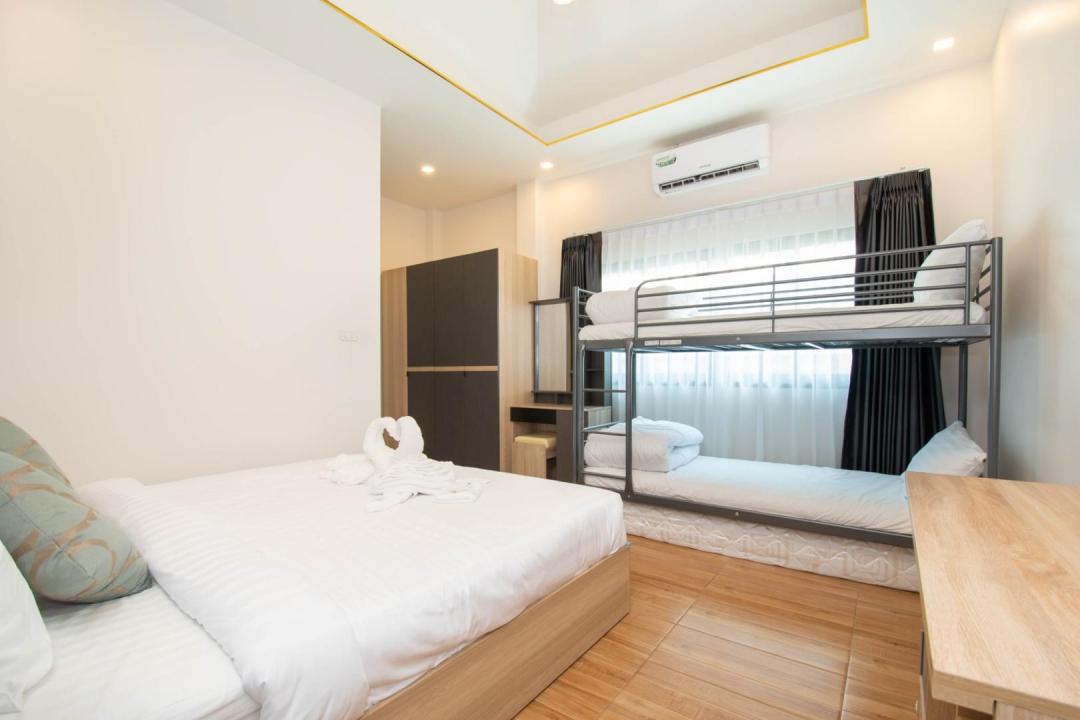 ห้องนอนที่ 1 มี เตียง 6 ฟุต 1 เตียง และเตียง 2 ชั้น 1 เตียง มีห้องน้ำในตัว