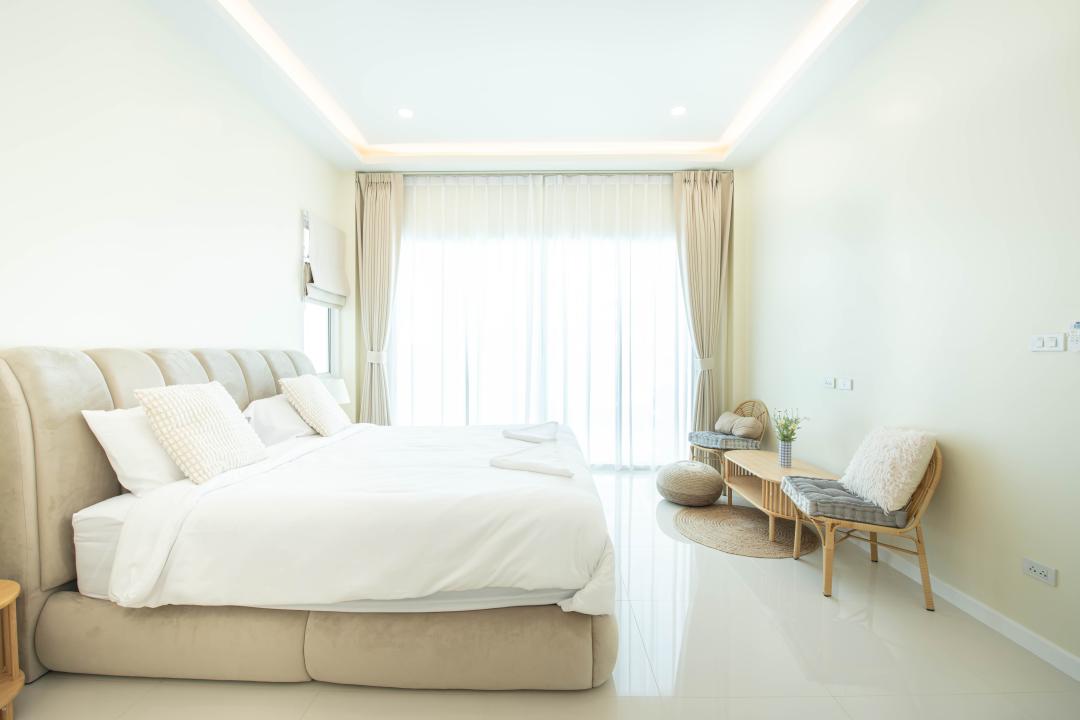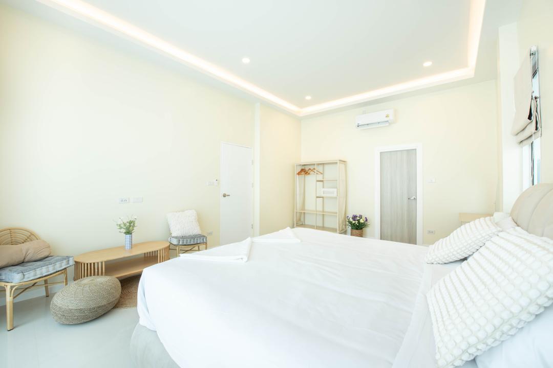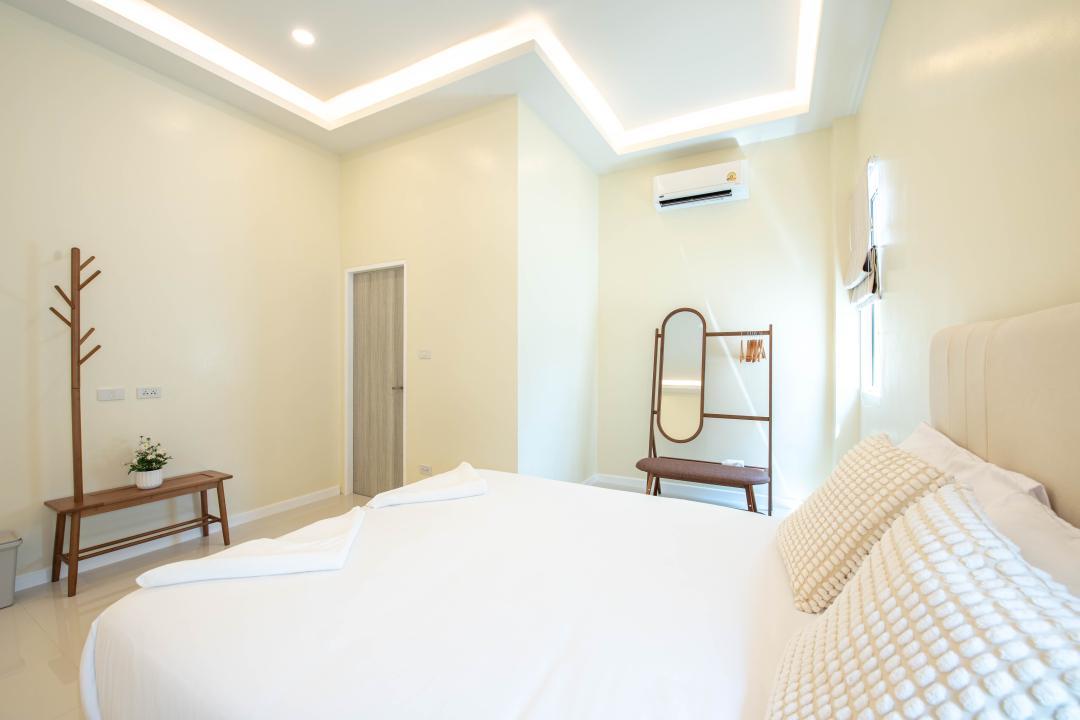 (-)ห้องนอนที่ 1 (เตียง 6 ฟุต 1 เตียง ห้องน้ำในตัว)