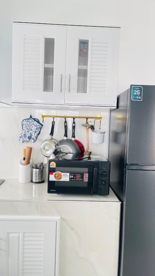 หม้อ กระทะ จานชาม ช้อน แก้วน้ำ เขียง มีด หม้อหุงข้าว ครก เครื่องปั่น ไมโครเวฟ เตาปิ้งขนมปัง ซึ้ง ถังน้ำแข็ง