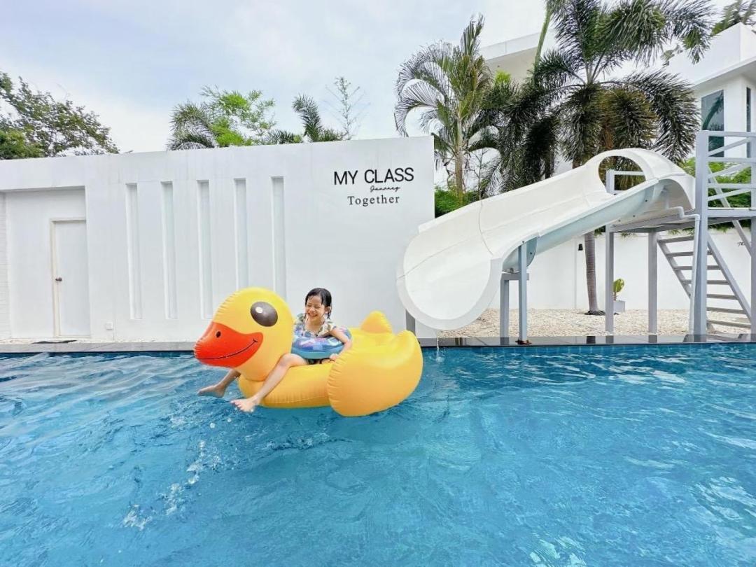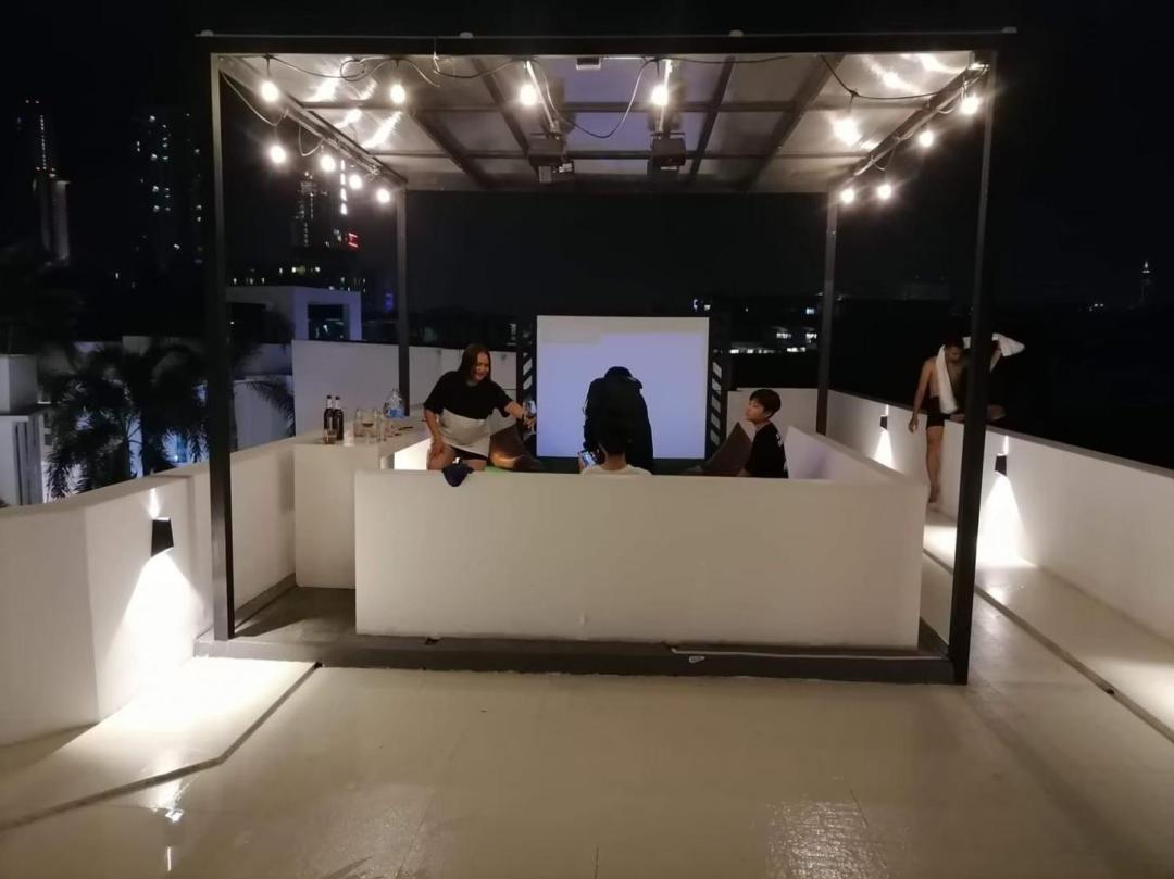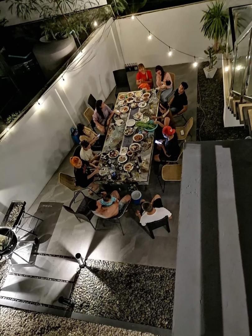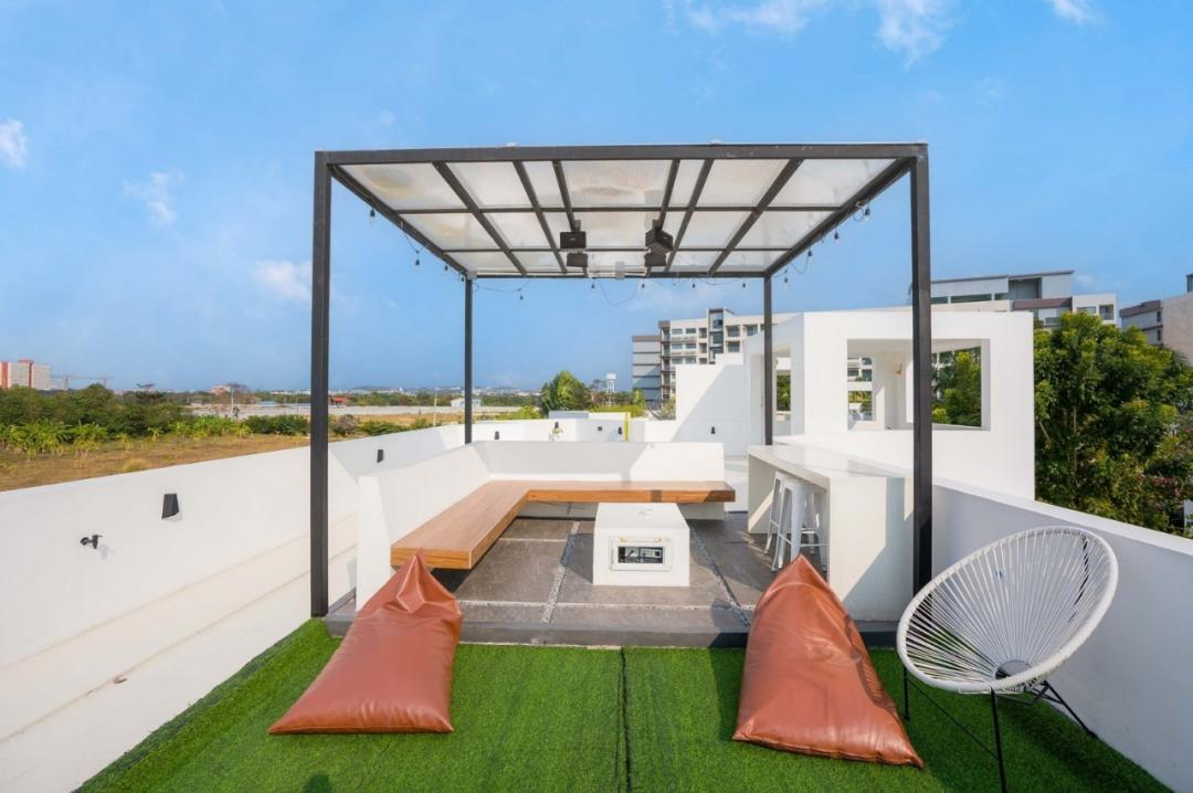 ร้องคาราโอเกะ ถ่ายรูปเซลฟี่ ถ่ายรูปเก็บภาพบรรยากาศความสุขและความหรูหราในวันหยุดพักผ่อน บ้านสไตล์โมเดิร์น 2 ชั้นและมีชั้นที่ 3 เป็นชั้นดาดฟ้า