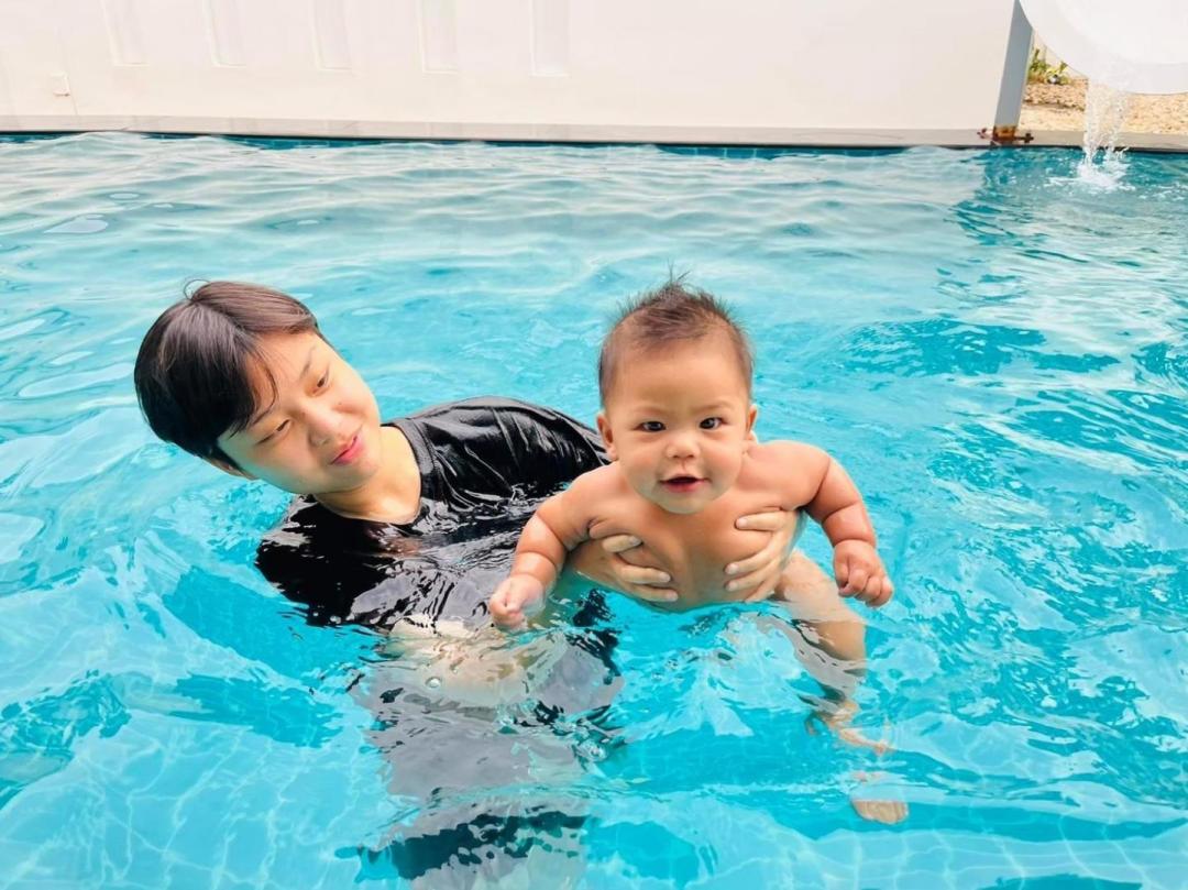 สระว่ายน้ำ กว้าง 3.5 เมตร ยาว 13 เมตร ลึก 130 ซม.