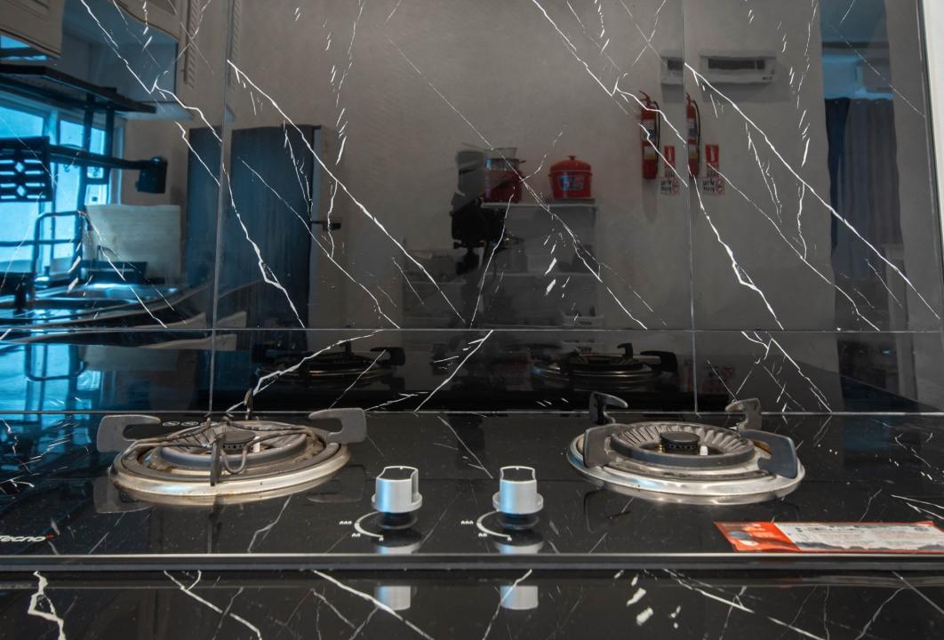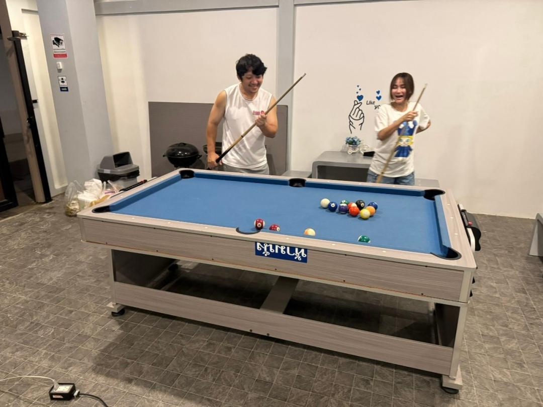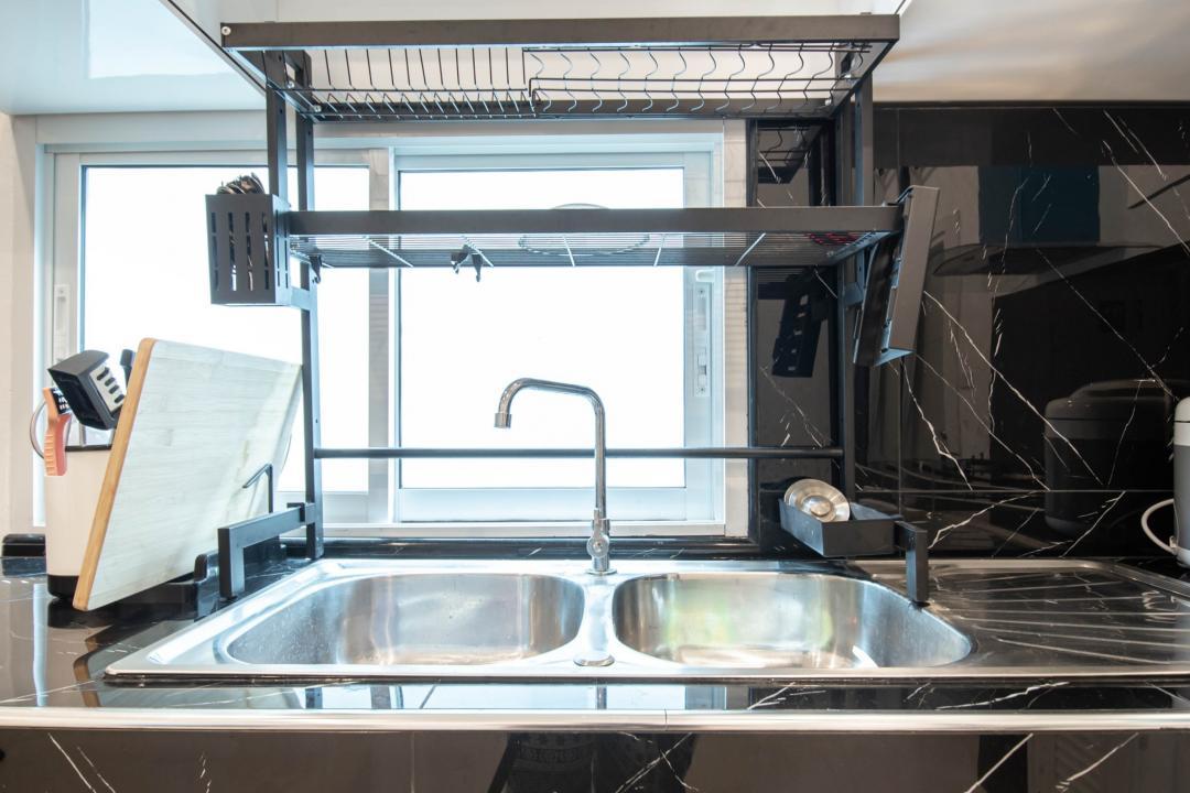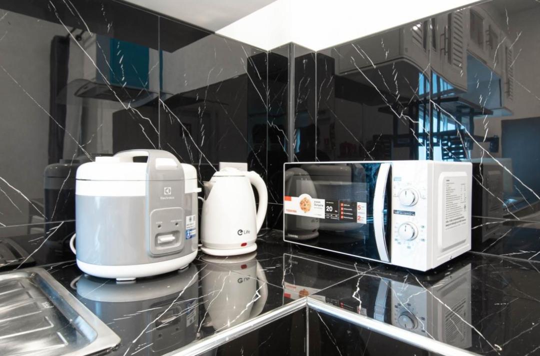 หม้อ กระทะ จานชาม ช้อน เตาปิ้งย่าง แก้วน้ำ แก้ววาย เขียง มีด หม้อหุงข้าว ครก ไมโครเวฟ เตาแก๊ส กระทะไฟฟ้า ที่เปิดไวน์ ถังน้ำแข็งมีครบค