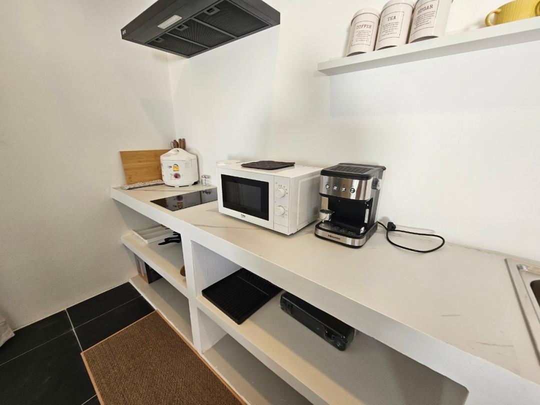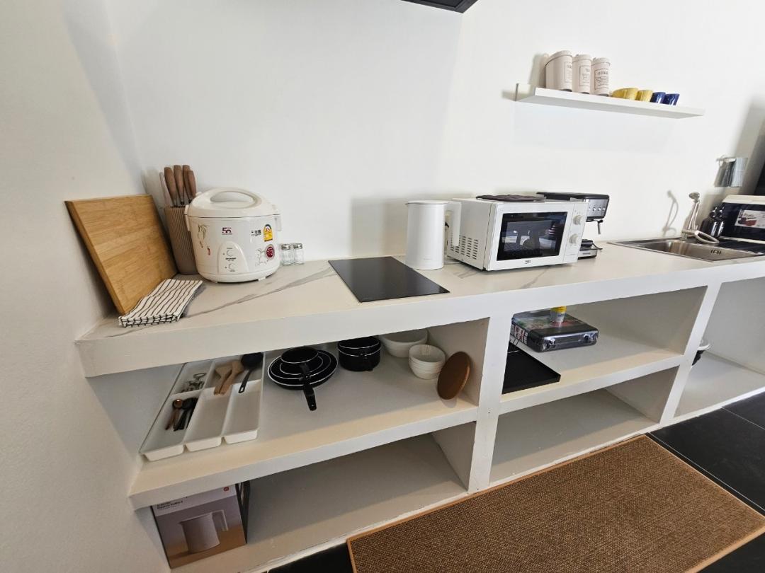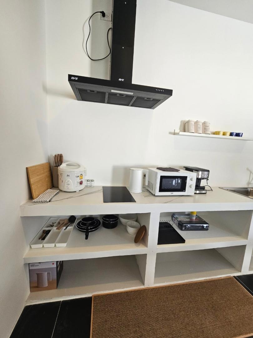 หม้อ กระทะ จานชาม ช้อน แก้วน้ำ เขียง มีด หม้อหุงข้าว ครก เครื่องปั่น ไมโครเวฟ เครื่องชงกาแฟ เตาไฟฟ้า เตาปิ้งย่าง กระติกน้ำแข็ง