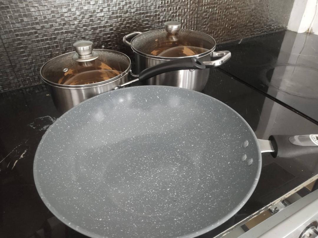 หม้อ กระทะ จานชาม ช้อน แก้วน้ำ เขียง มีด หม้อหุงข้าว ถังน้ำแข็ง