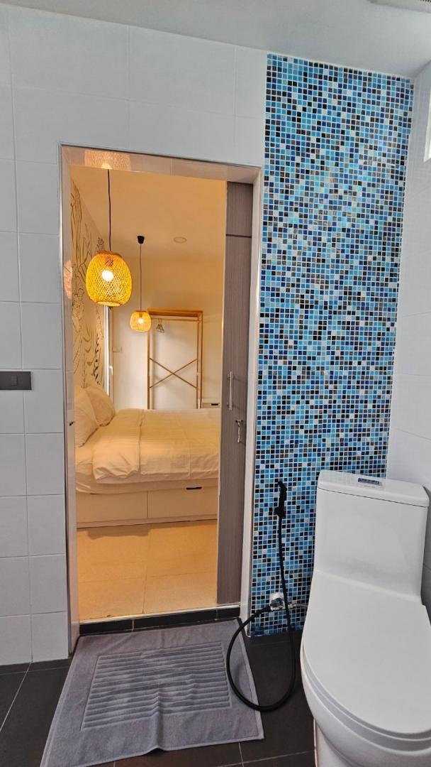 ห้องน้ำรวม 1 ห้อง ส่วนกลางตรงห้องนั่งเล่น