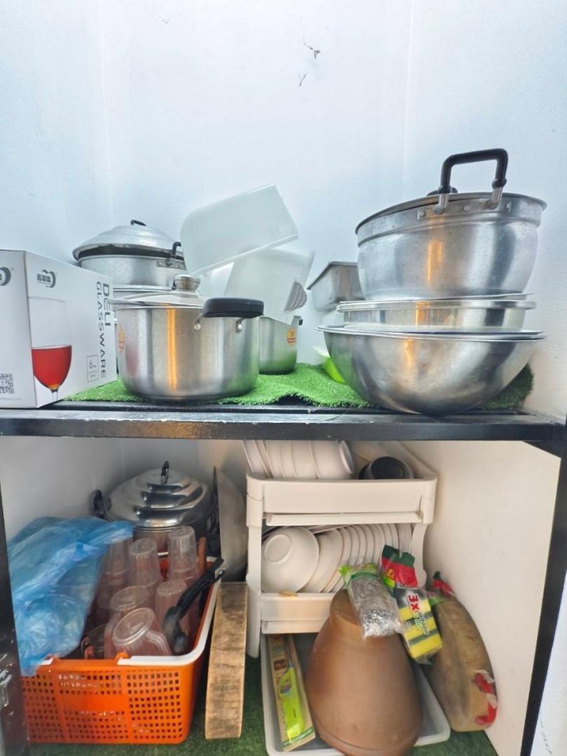 หม้อ กระทะ จานชาม ช้อน แก้วน้ำ เขียง มีด หม้อหุงข้าว ถังน้ำแข็ง ครก ไมโครเวฟ ซึ้ง เครื่องปั่น