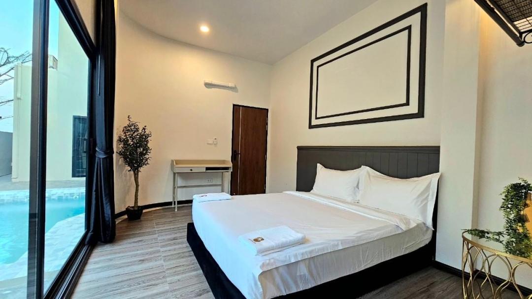 -ห้องนอนที่ 2 มีเตียง 5 ฟุต 1 เตียง มีห้องน้ำในตัว ห้องหน้าสระ )