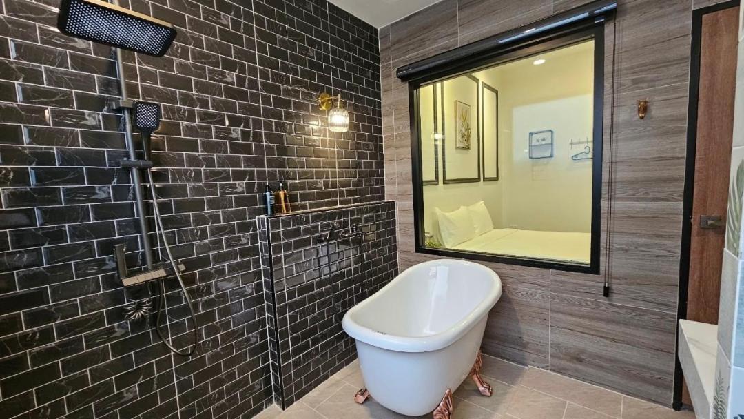 -ห้องนอนที่ 1 มีเเตียง 5 ฟุต 1 เตียง มีห้องน้ำในตัวพร้อมอ่างอาบน้ำแช่ )