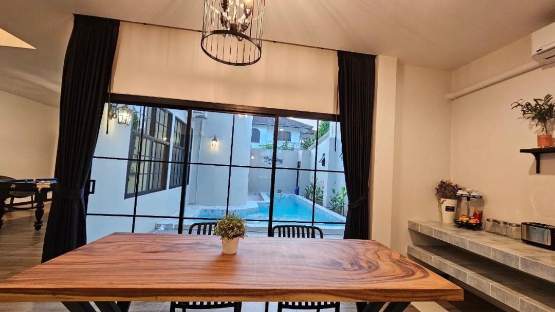 **โซนนั่งเล่นกว้างขวางสบายสุดๆ มีที่นั่งทานอาหารทั้งในบ้าน นอกบ้าน ริมสระว่ายน้ำ