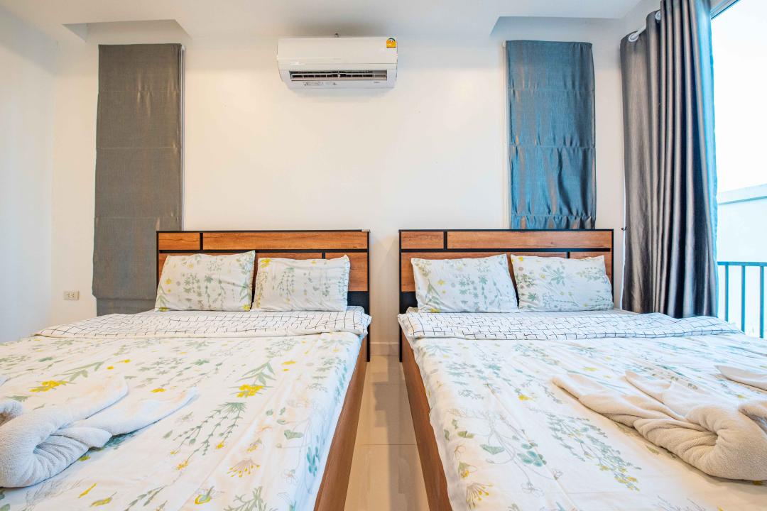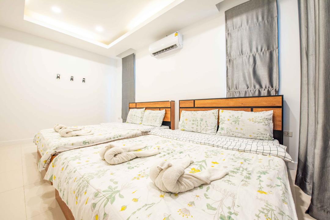ห้องนอนห้องที่ 1 เตียง 5 ฟุต 2 เตียง ห้องน้ำในตัว