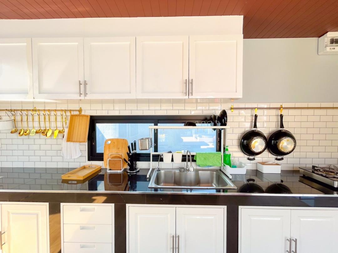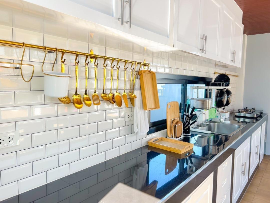 – หม้อ, กระทะ, จานชาม, ช้อน, แก้วน้ำ, เขียง, มีด, หม้อหุงข้าว, ครก, เครื่องปั่น, ไมโครเวฟ, เตาปิ้งขนมปัง, ซึ้ง, ถังน้ำแข็ง