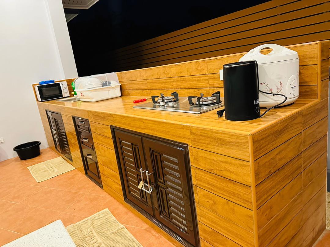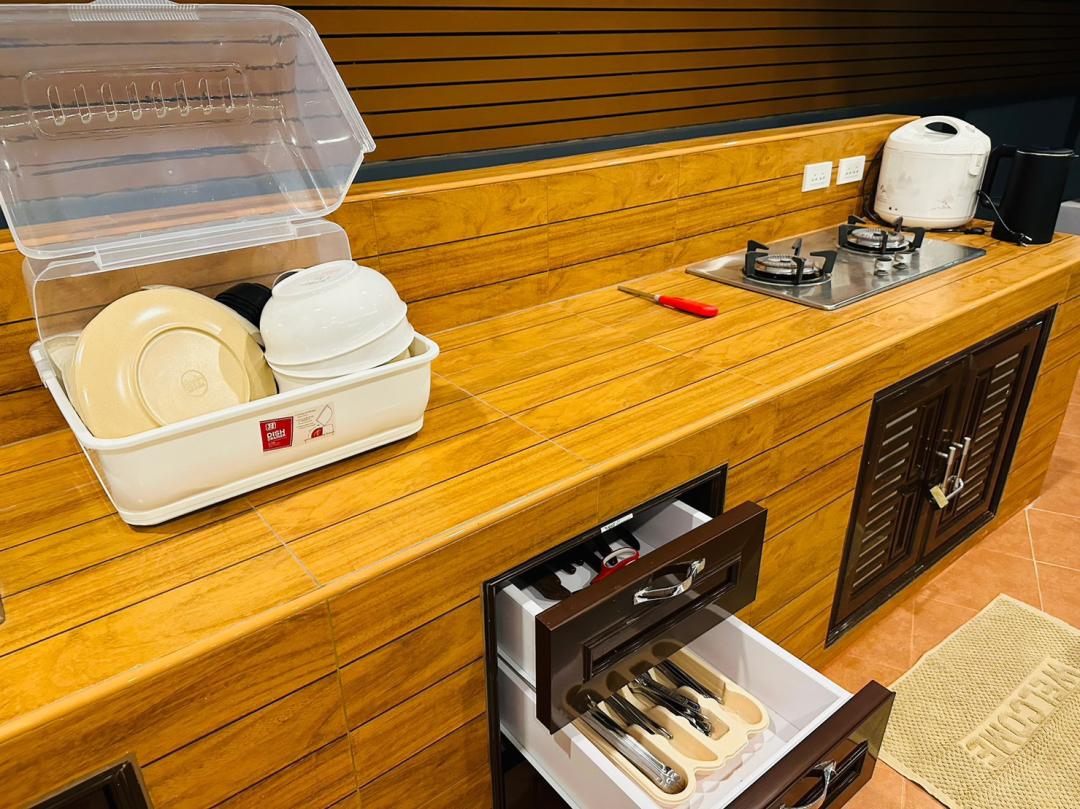 มีอุปกรณ์ครัวให้พร้อม จานชามพร้อม หม้อหุงข้าว ไมโครเวฟ กาน้ำร้อน