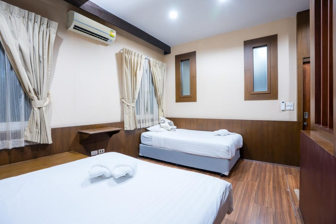 ห้อง12. เตียง 6 ฟุต 1 เตียง เตียง 3.5 ฟุต 1 เตียง ห้องน้ำในตัว (3 ท่าน)
