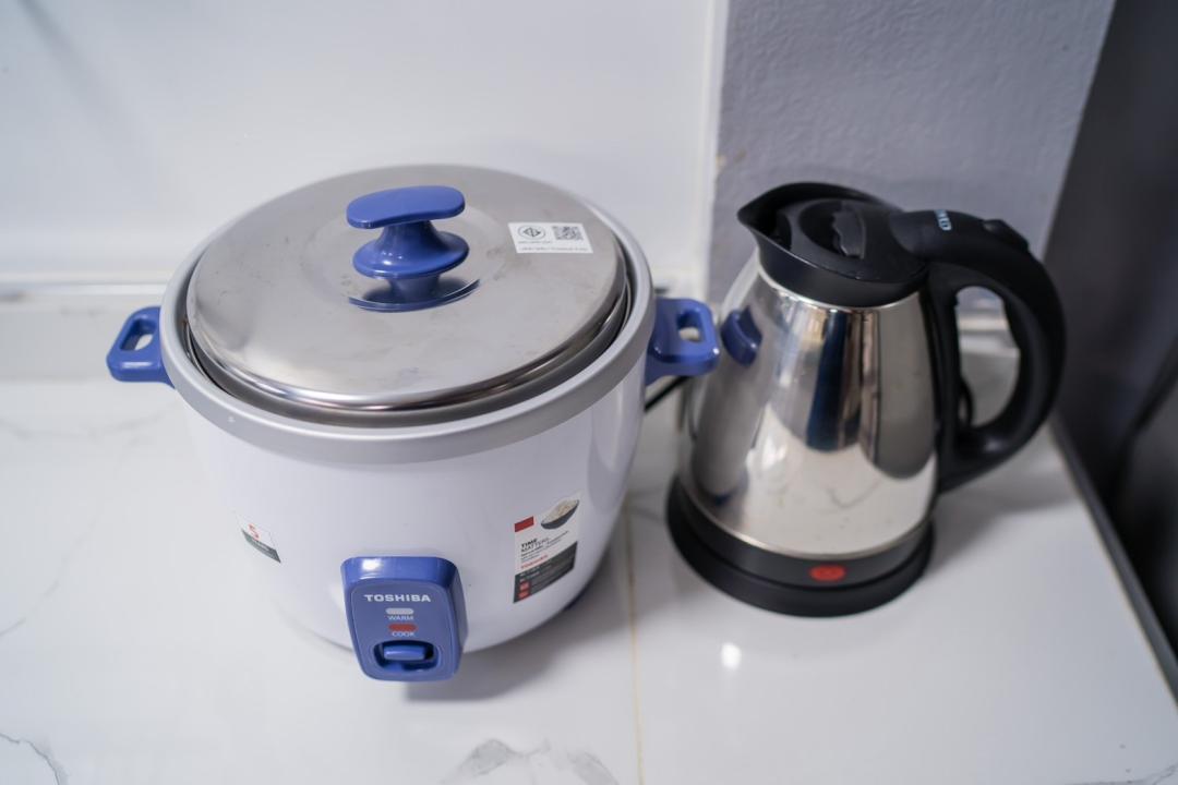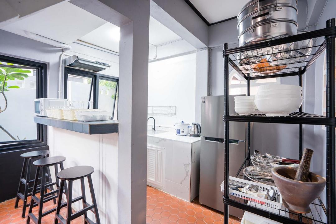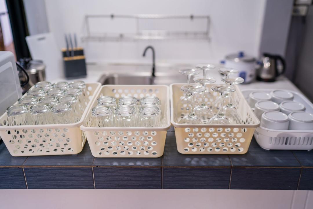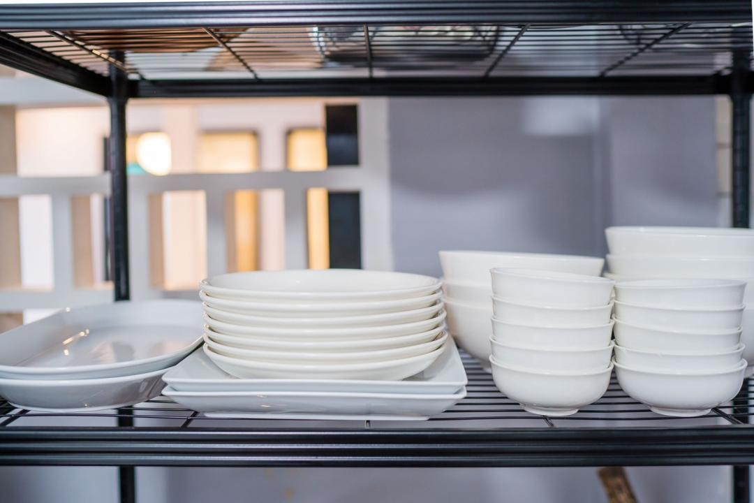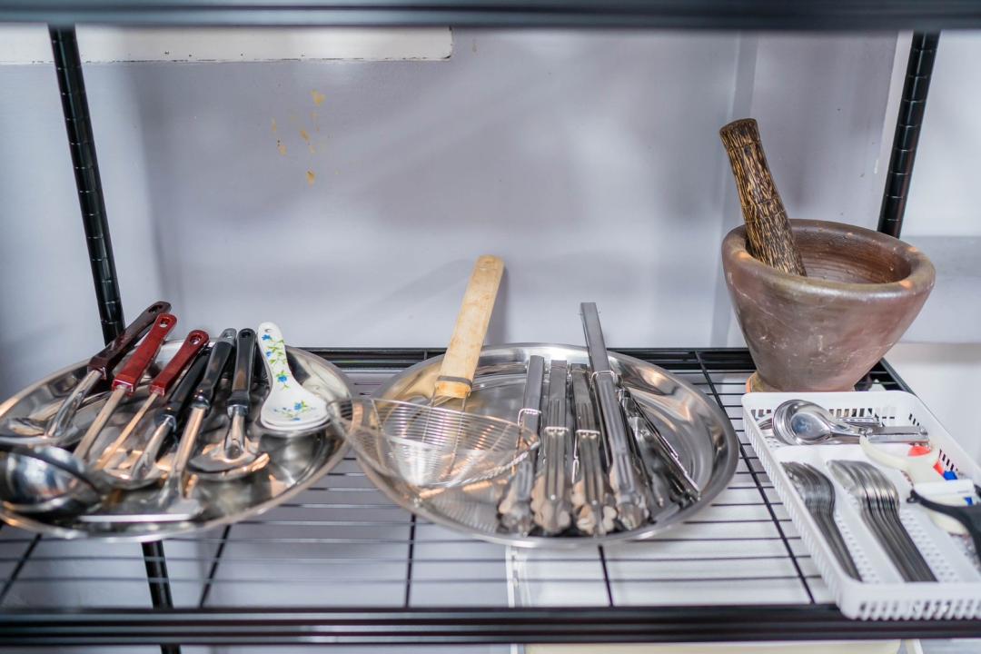 ครก สาก เขียง มีด จาน ชาม ช้อน กะละมังล้างผัก เเก้วน้ำดื่ม แก้วไวน์ เเก้วเบียร์ แก้วกาแฟ หม้อ กะทะ ตู้เย็น ถังแช่นำ้แข็ง ไมโครเวฟ กานำ้ร้อน หม้อหุงข้าว เครื่องปิ้งขนมปัง เตาแก๊ส เตาปิ้งย่าง