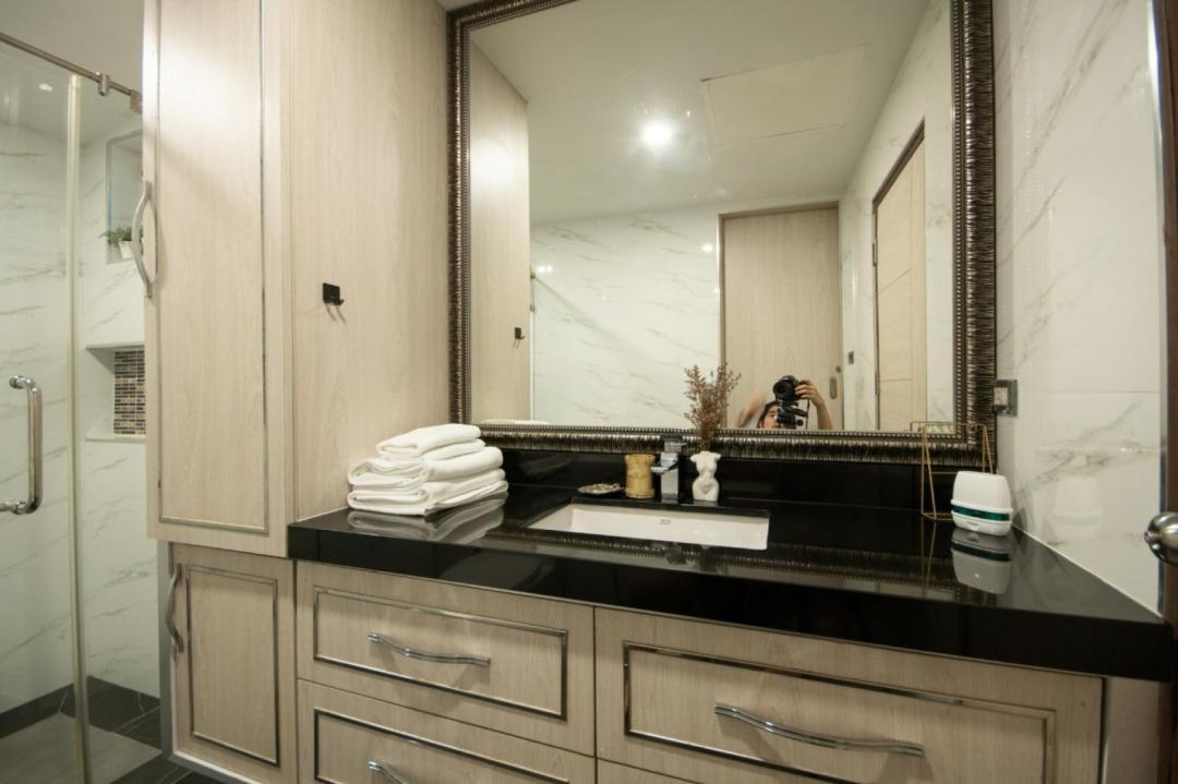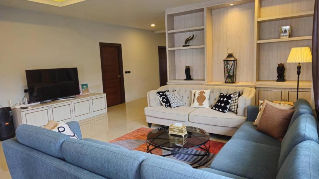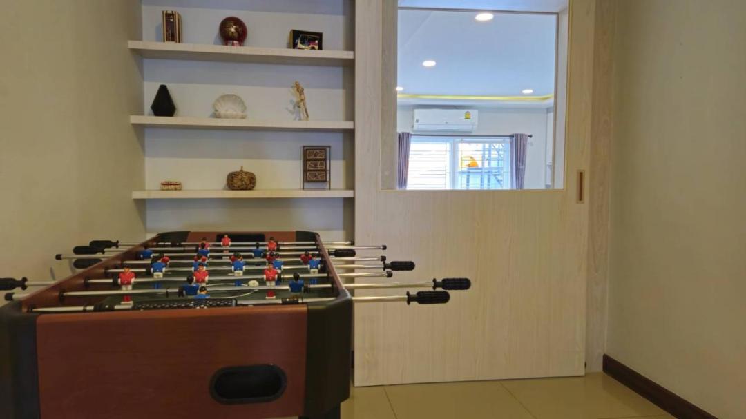 จอดรถในบ้านได้ 8 คัน มีปลั๊กไฟที่โรงจอดรถ เสียบชาร์จรถฟร