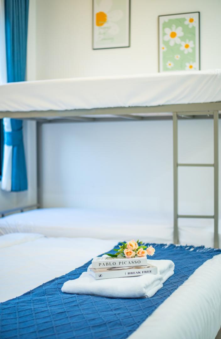 -ห้องนอนที่ 2 เตียง 6ฟุต 1 เตียง เตียง 2 ชั้น 1 เตียง มีห้องน้ำในตัวแชร์กับห้องนั่งเล่น