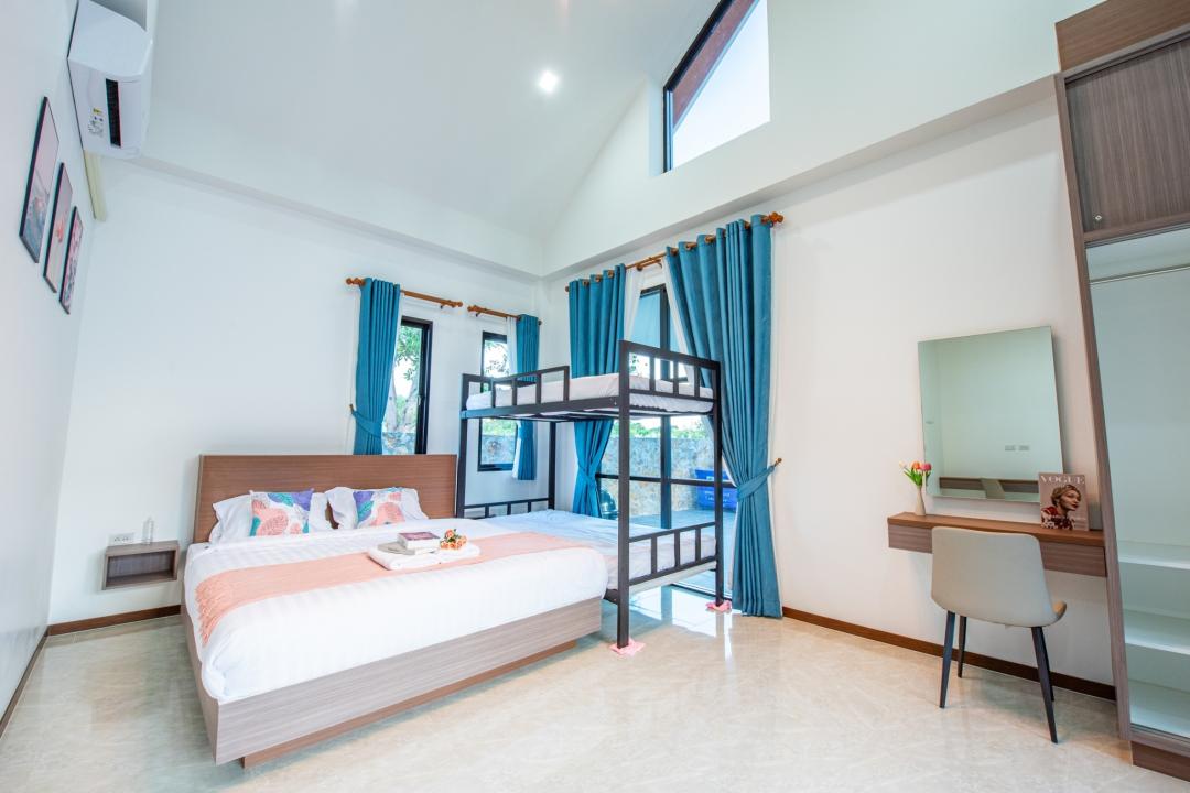 -ห้องนอนที่ 3 เตียง 6ฟุต 1 เตียง เตียง 2 ชั้น 1 เตียง มีห้องน้ำในตัว