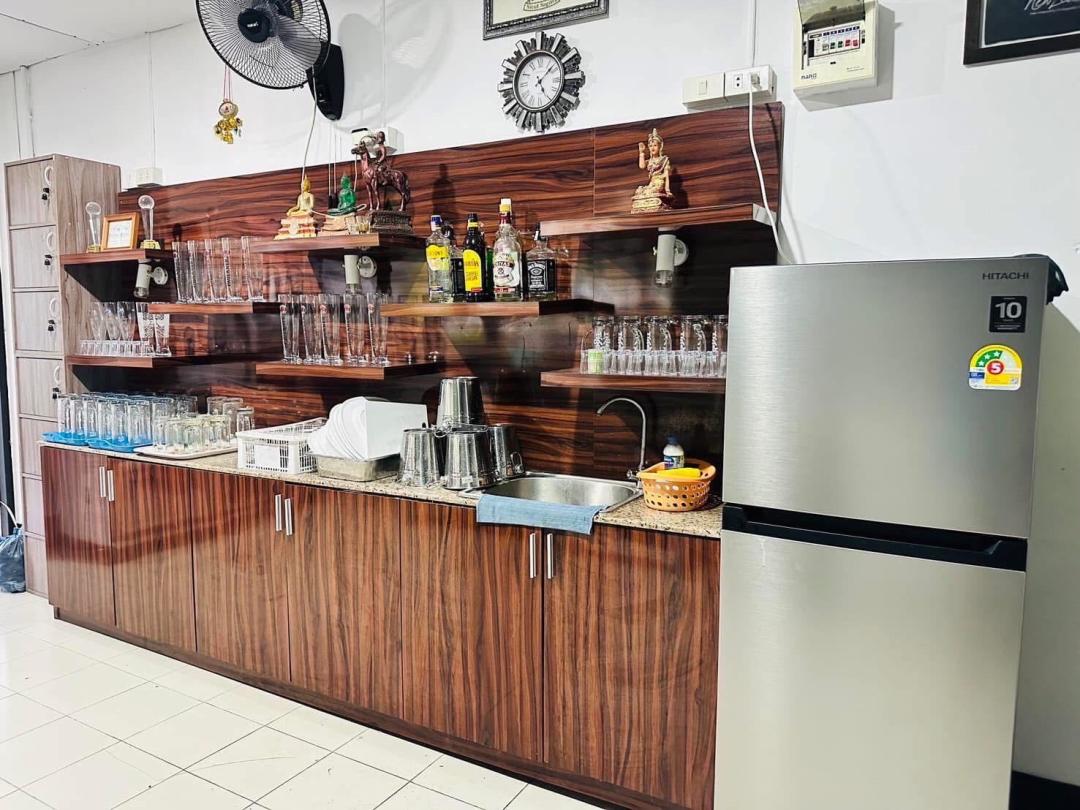หม้อ กระทะ จานชาม ช้อน แก้วน้ำ เขียง มีด หม้อหุงข้าว ครก ไมโครเวฟ เตาปิ้งขนมปัง  ถังน้ำแข็งตู้เย็ฯสำหรับแช่อาหาร ตู้เย็ฯสำหรับแช่เครื่องดื่มโดยเฉพาะ เตาก๊าซไฟฟ้า