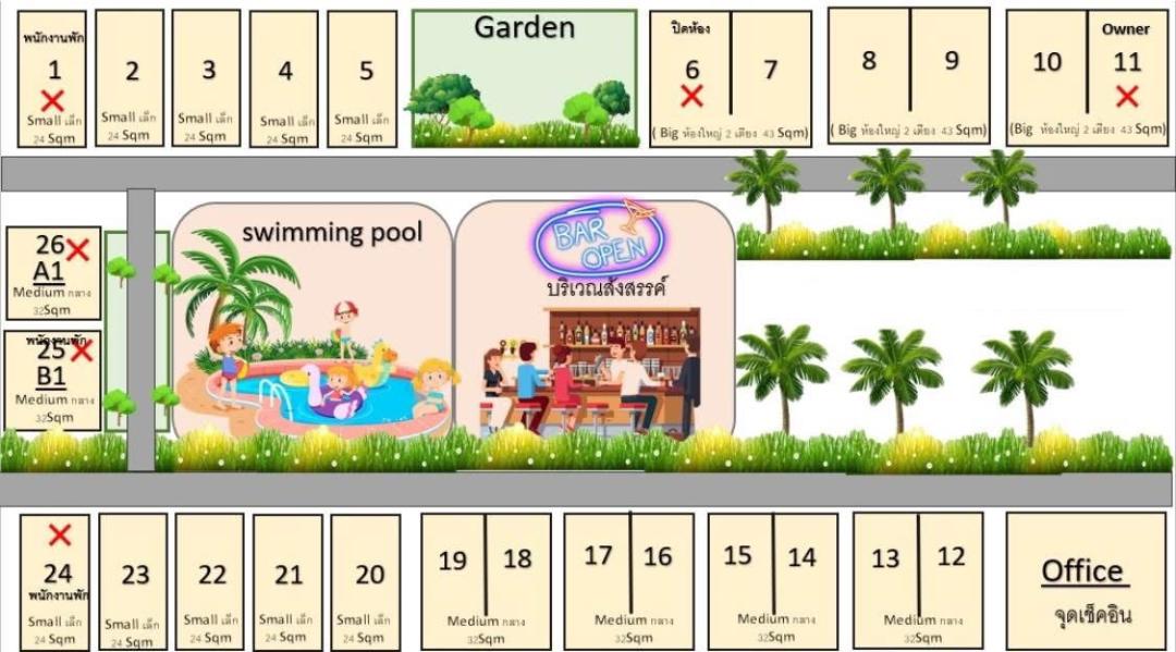 1. (Small Room) 24 Sqm ห้องเล็ก จำนวน 8 ห้อง