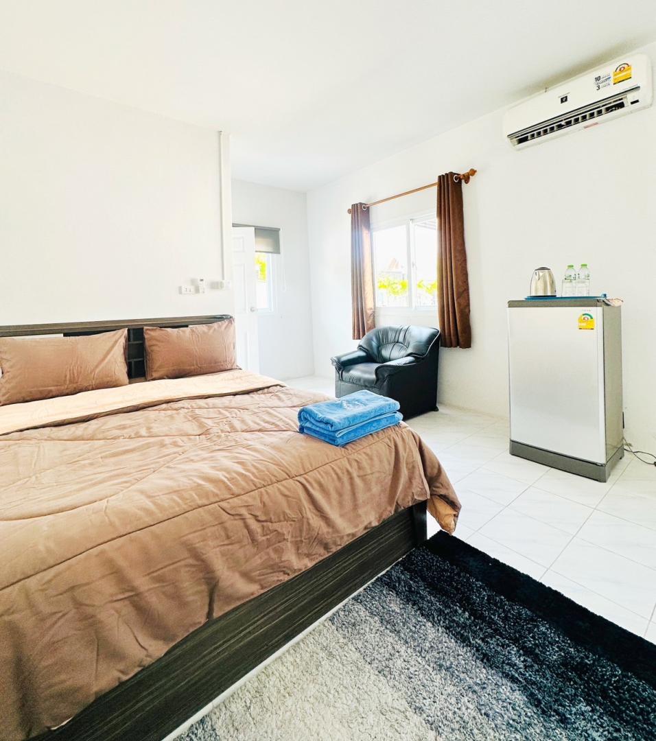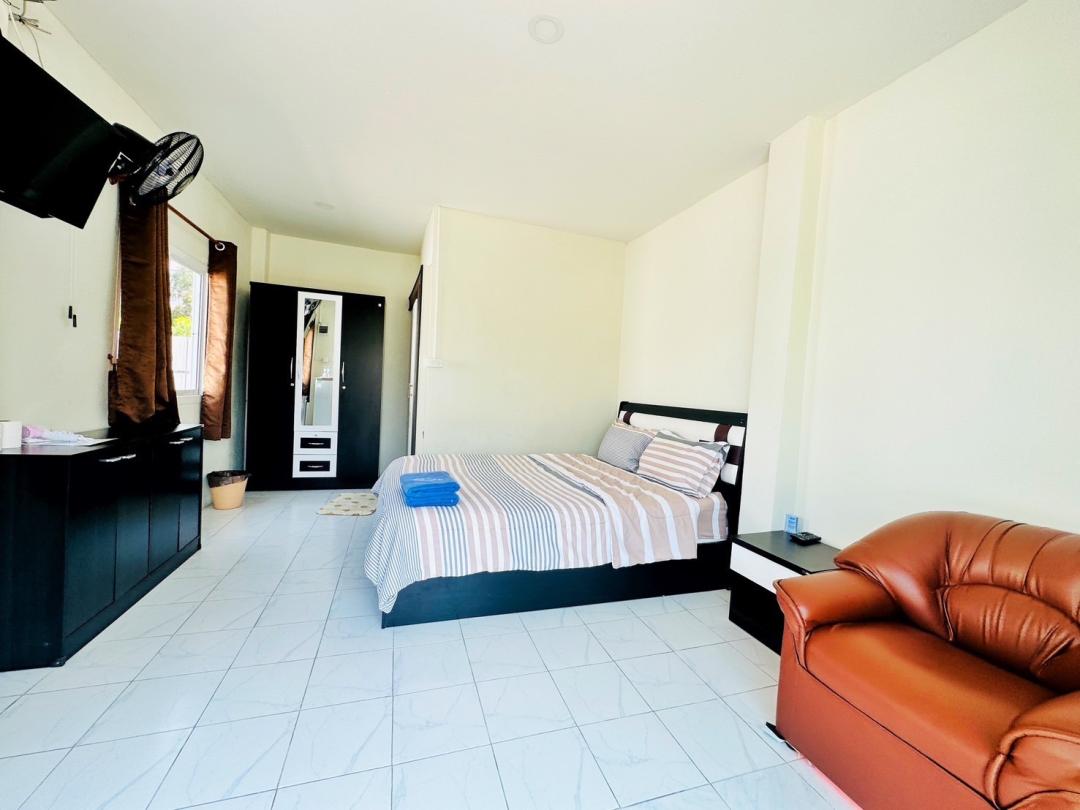 – (Large Room) ห้องใหญ่มี 4 ห้อง 43 Sqm ทุกห้องพักมีห้องน้ำภายในตัว ห้องใหญ่: เตียง 5 ฟุต + 3.5 ฟุต + โซฟายาว สำหรับ 3 ท่าน / ห้อง