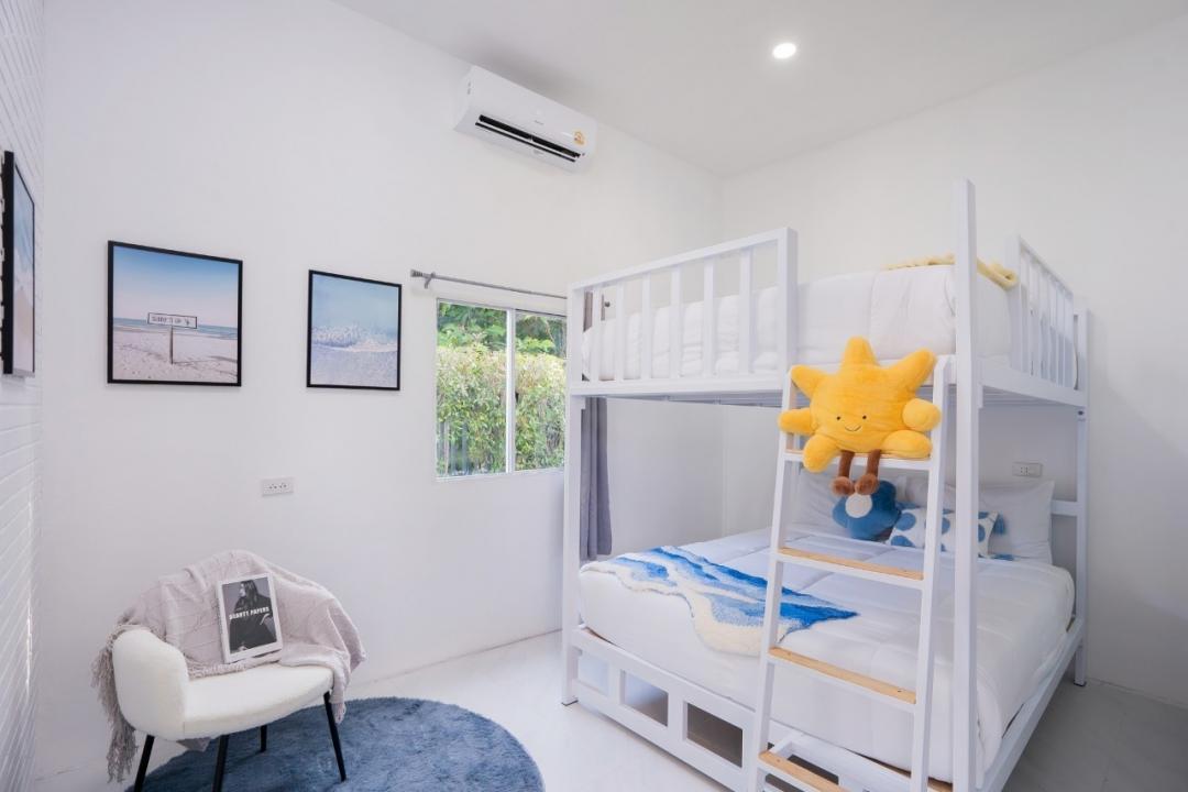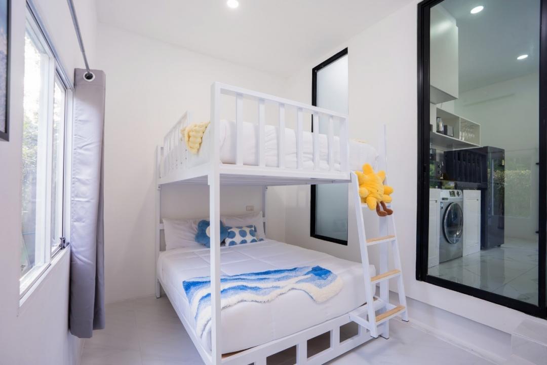 เตียง 2 ชั้นขนาด 5 ฟุต ใช้ห้องน้ำร่วมกับห้องรับแขก