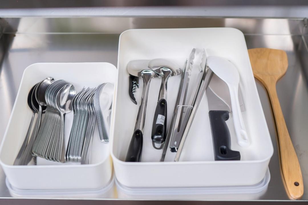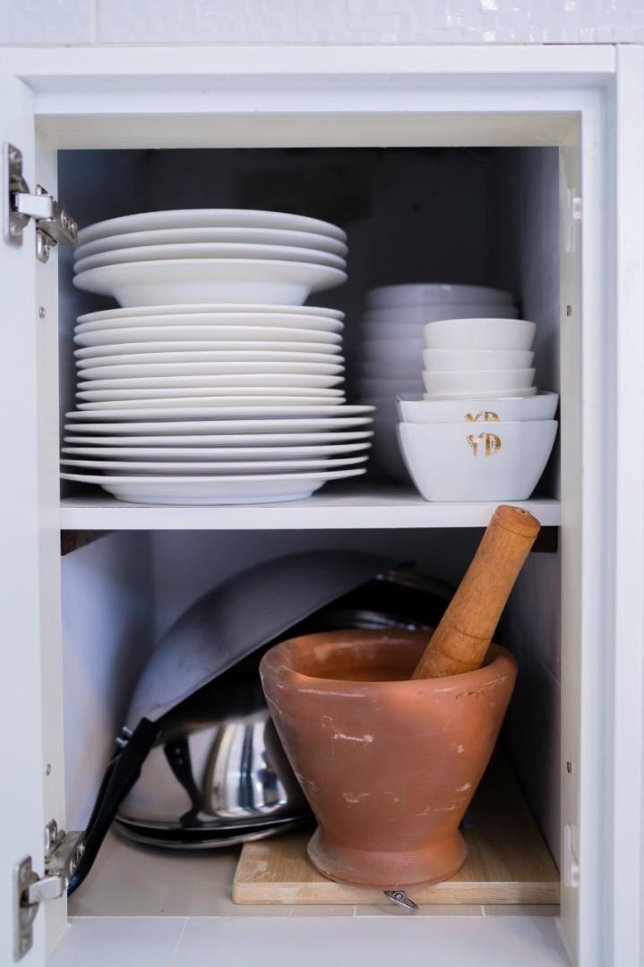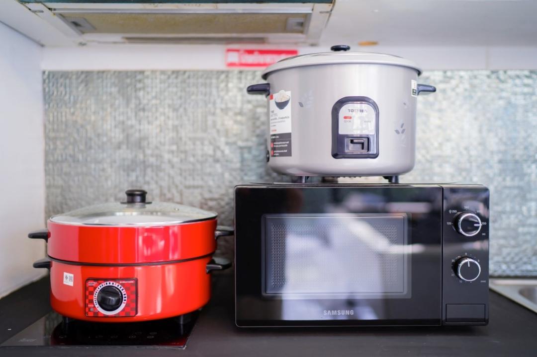 กะทะ หม้อ หม้อหุงข้าว จาน ชาม ตะหลิว ช้อนส้อม ที่คีบ ไมโครเวฟ แก้ว ถ้วย ถ้วยน้ำจิ้ม มีด เขียง ครก ช้อนเล็ก ช้อนกลาง กะละมัง กาน้ำร้อน ทัพพี ซึ้ง เครื่องปิ้งขนมปัง หม้อนึ่ง