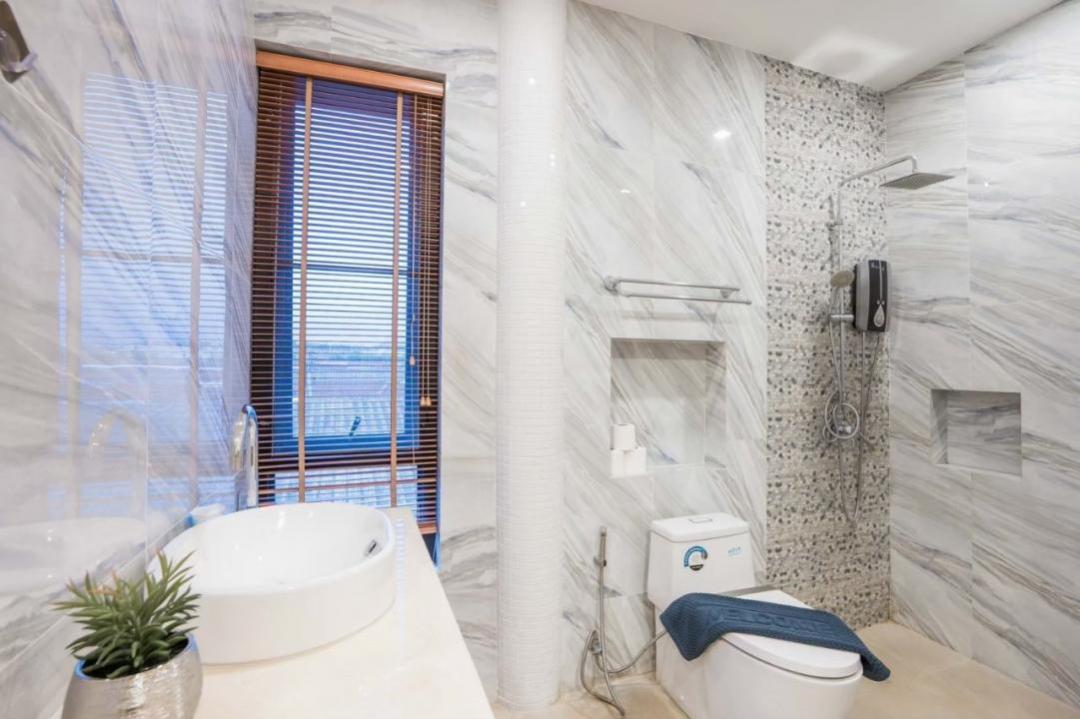 – ห้องน้ำแยก 1 ห้อง มีแค่ชักโครก (อาบไม่ได้) อยู่ชั้นล่างห้องคาราโอเกะ