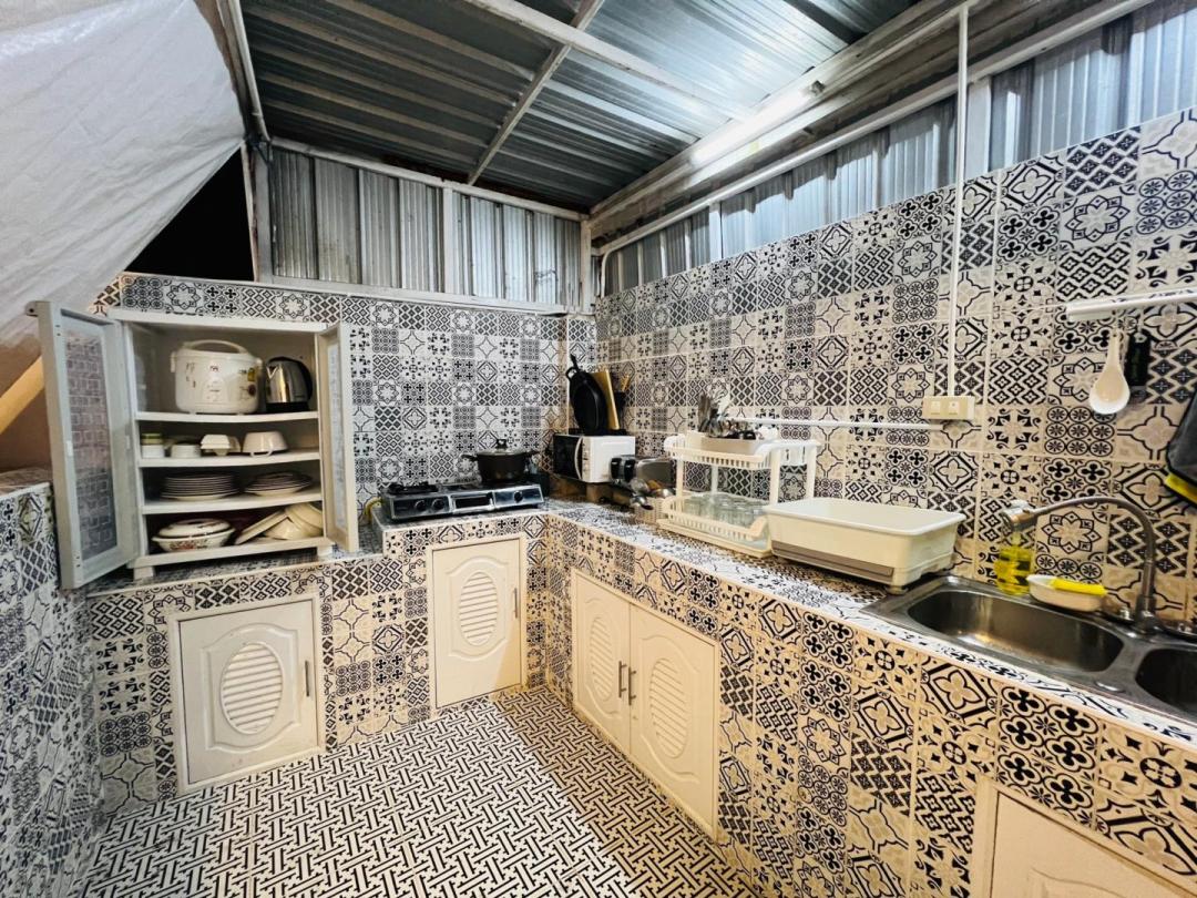– เครื่องครัว : เตาแก๊ส หม้อ กระทะ เขียง มีด ครก
