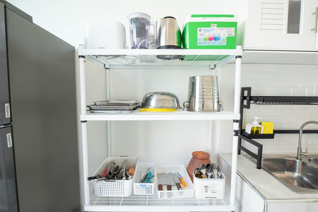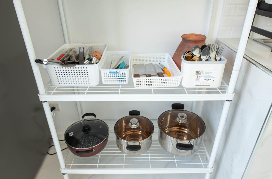 หม้อ กระทะ จานชาม ช้อน แก้วน้ำ เขียง มีด หม้อหุงข้าว ครก เครื่องปั่น ไมโครเวฟ เตาปิ้งขนมปัง หม้อนึ่ง ถังน้ำแข็ง เตาปิ้งย่าง