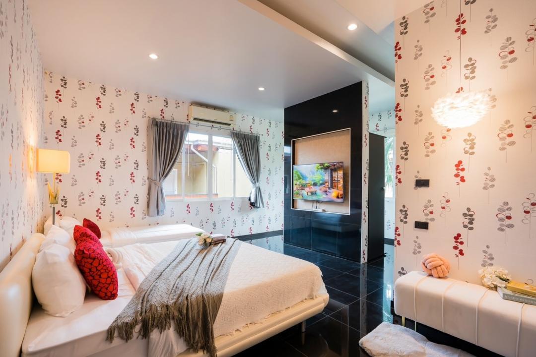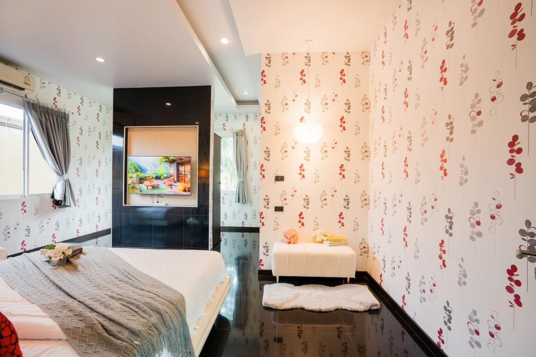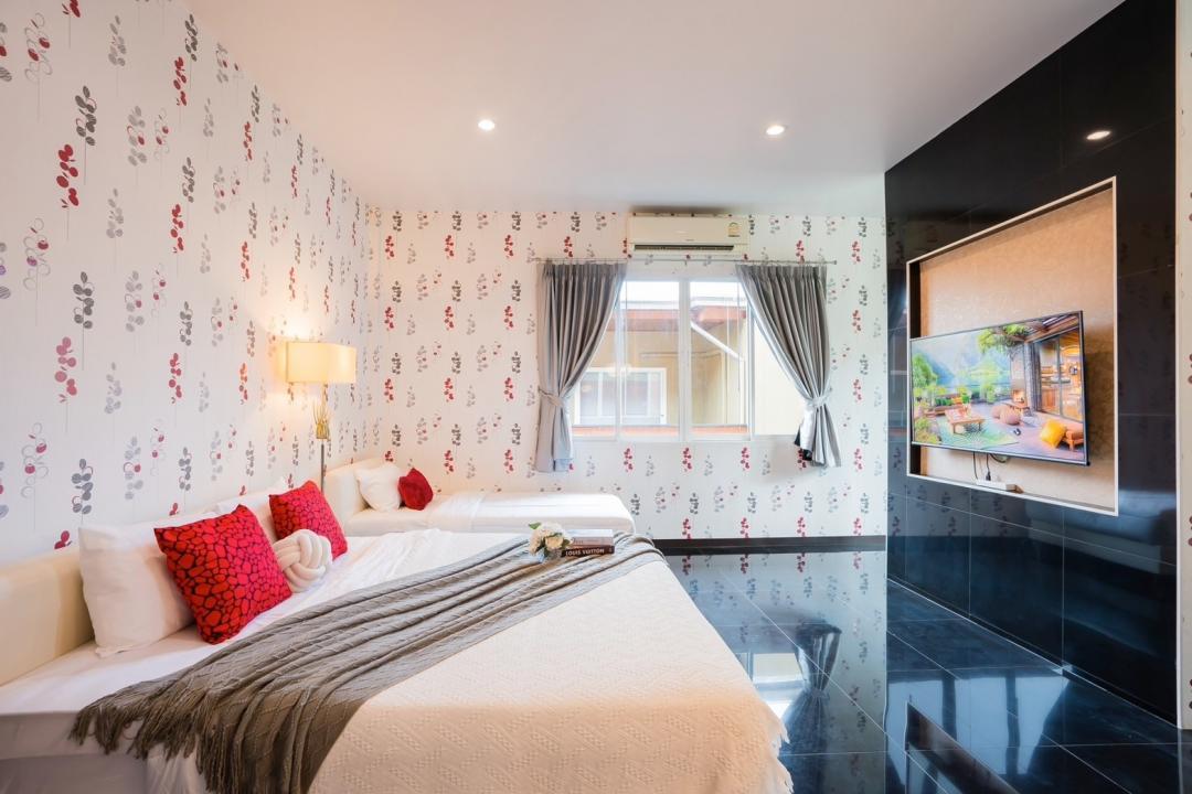 – ห้องที่ 1 : ชั้นล่าง เตียง 6 ฟุต 1 เตียง (ห้องน้ำในตัว + อ่างอาบน้ำ) มีทีวีขนาด 65 นิ้ว