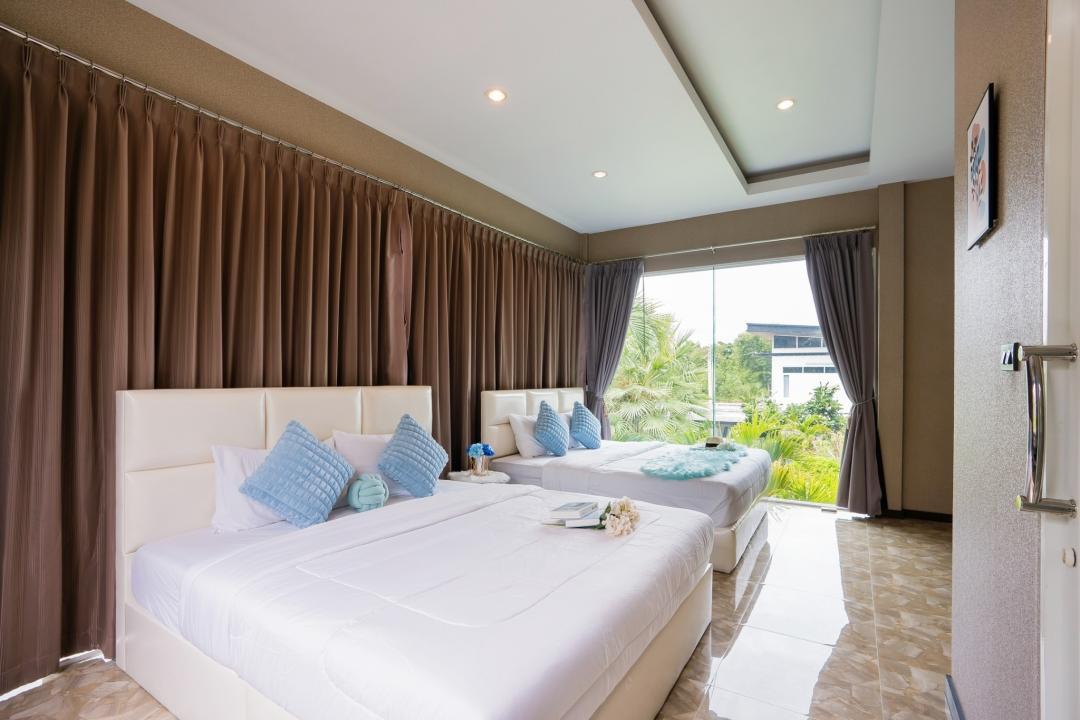 – ห้องที่ 3 : ชั้นสอง เตียง 6 ฟุต 1 เตียง + เตียง 3.5 ฟุต 1 เตียง (ห้องน้ำในตัว) มีทีวีขนาด 65 นิ้ว