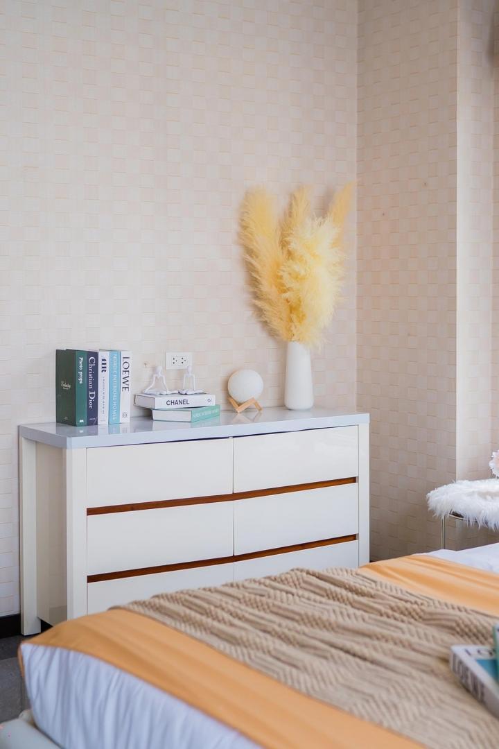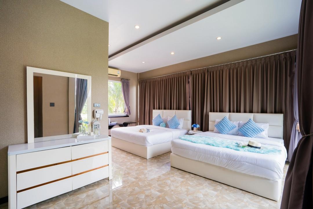 – ห้องที่ 2 : ชั้นสอง เตียง 6 ฟุต 2 เตียง (ห้องน้ำในตัว + อ่างอาบน้ำ) มีทีวีขนาด 65 นิ้ว