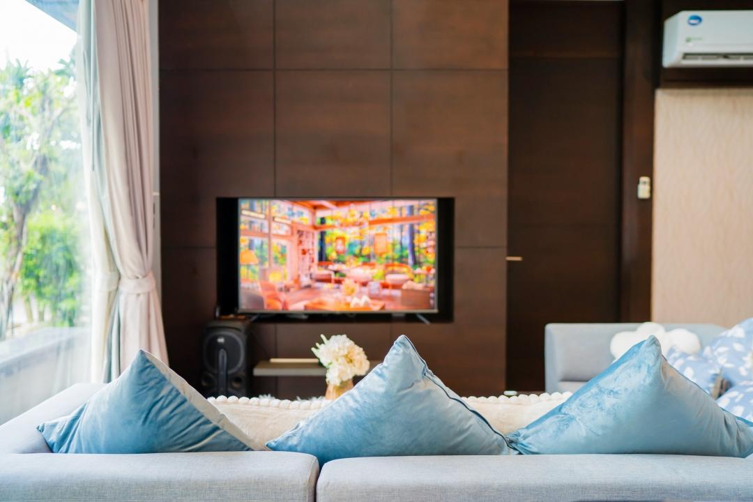 – ทีวีห้องโถงขนาด 65 นิ้ว