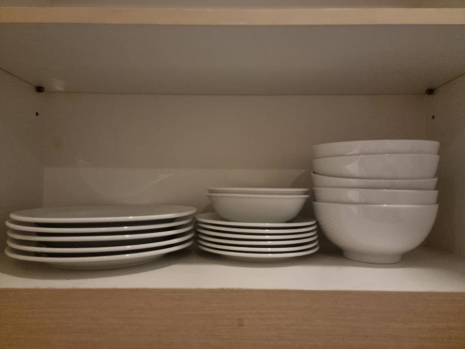 หม้อ กระทะ จานชาม ช้อน แก้วน้ำ เขียง มีด หม้อหุงข้าว ครก ไมโครเวฟ เตาปิ้งขนมปัง ซึ้ง ถังน้ำแข็ง