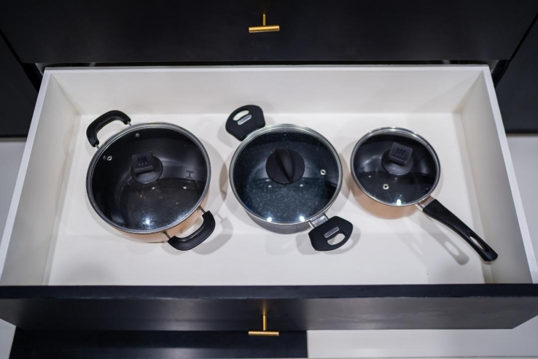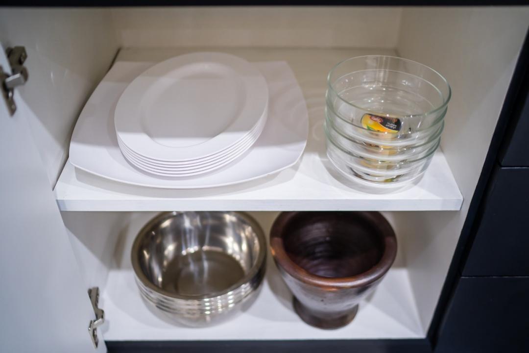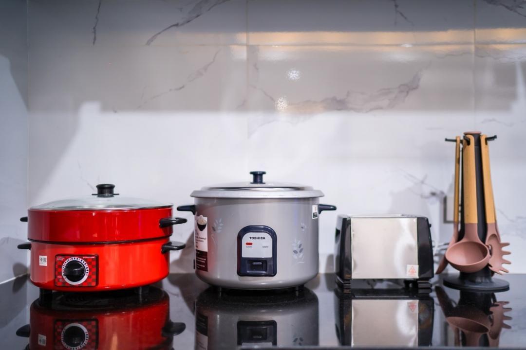 กะทะ หม้อ หม้อหุงข้าว จาน ชาม ตะหลิว ช้อนส้อม ที่คีบ ไมโครเวฟ แก้ว ถ้วย ถ้วยน้ำจิ้ม มีด เขียง ครก ช้อนเล็ก ช้อนกลาง กะละมัง กาน้ำร้อน ทัพพี ซึ้ง เครื่องปิ้งขนมปัง หม้อนึ่ง