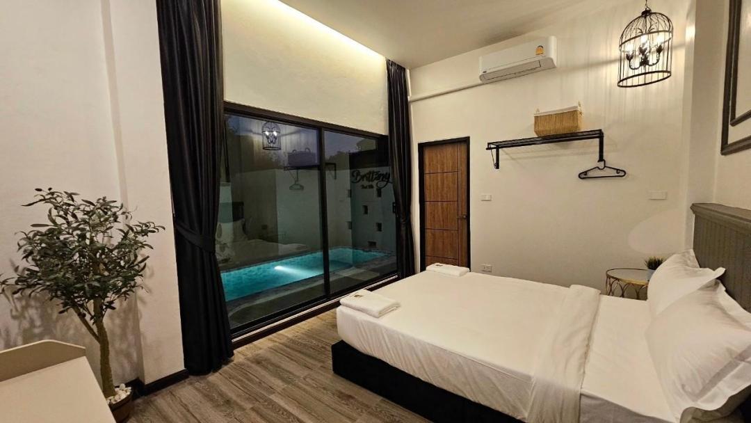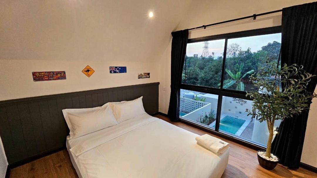 -ห้องนอนที่ 2 มีเตียง 5 ฟุต 1 เตียง มีห้องน้ำในตัว ห้องหน้าสระ )