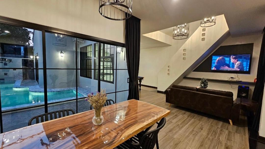 **โซนนั่งเล่นกว้างขวางสบายสุดๆ มีที่นั่งทานอาหารทั้งในบ้าน นอกบ้าน ริมสระว่ายน้ำ