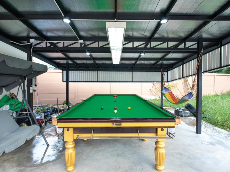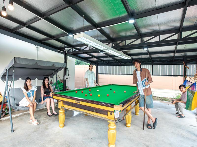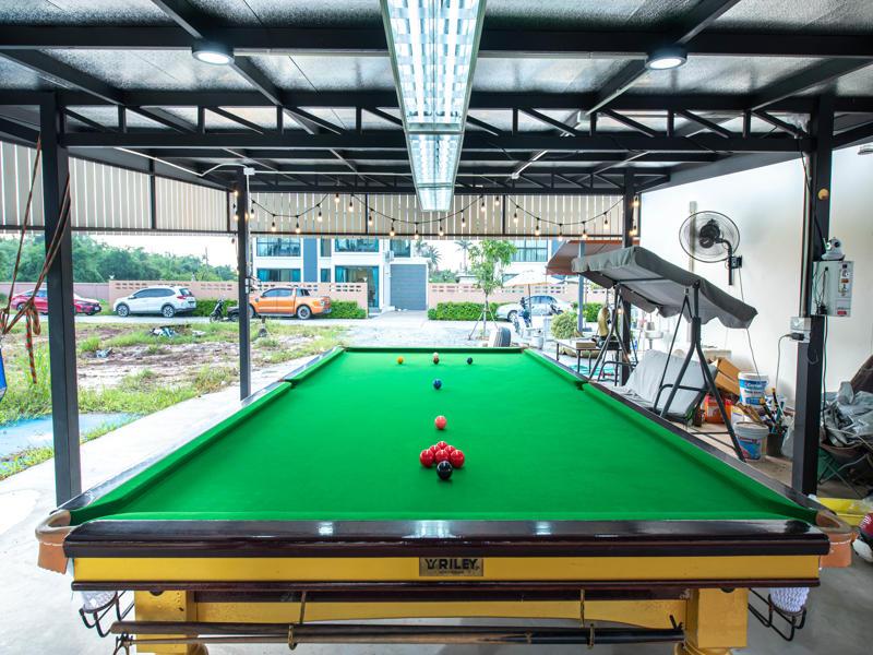 – โต๊ะสนุ้กรวมอยู่หน้าบ้านจะมีบ้านหลังน้อยอยู่