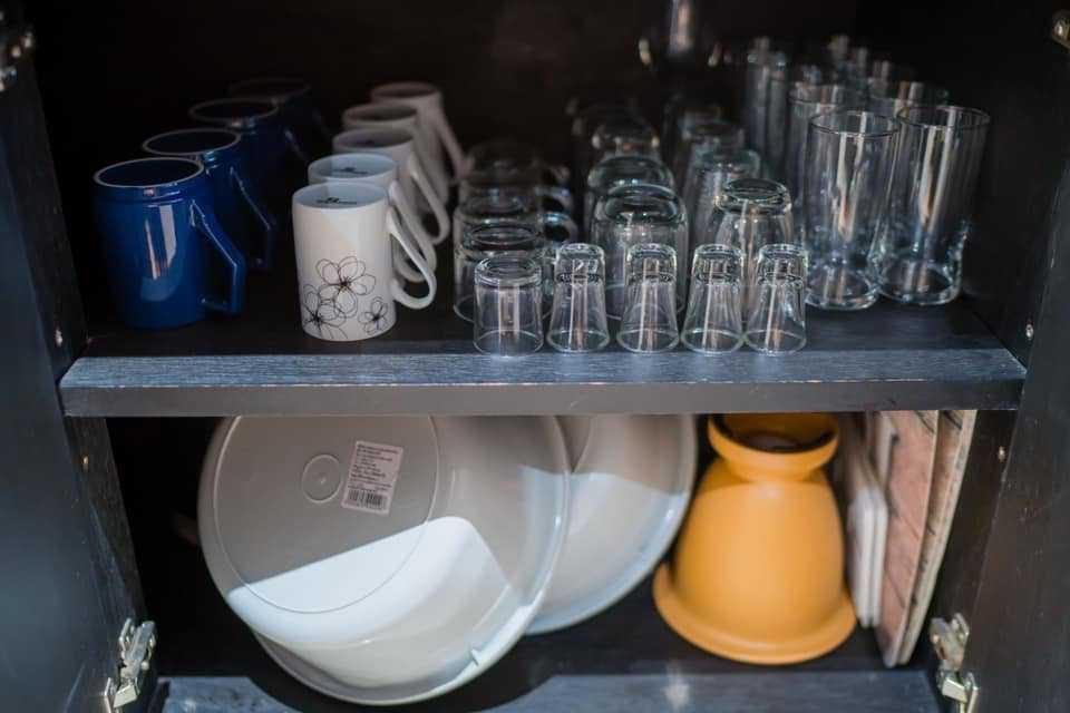 ครกสาก มีดเขียง จานชาม ช้อนส้อม หม้อ กระทะ แก้ว