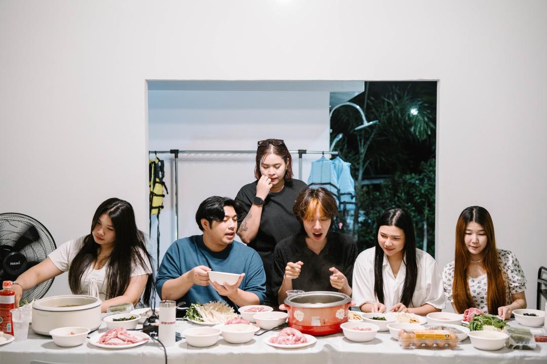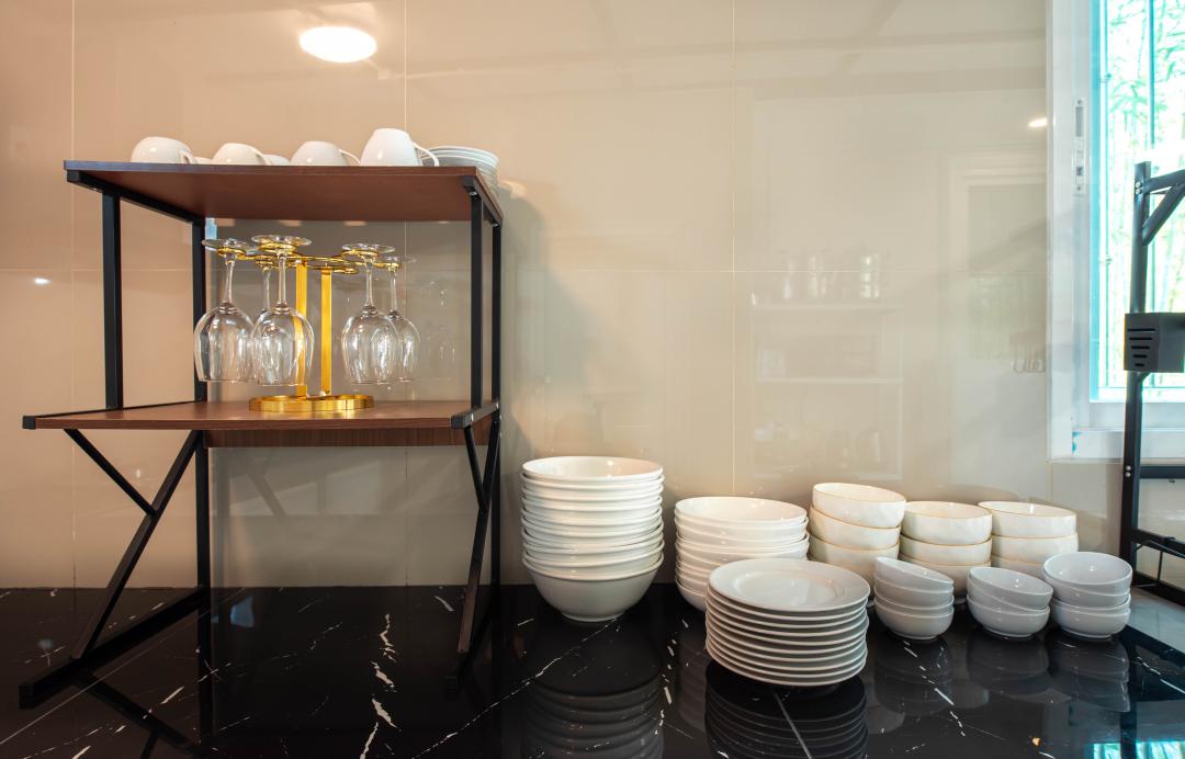 หม้อ กระทะ จานชาม ช้อน แก้วน้ำ เขียง มีด หม้อหุงข้าว ครก ไมโครเวฟ เตาปิ้งขนมปัง ซึ้ง ถังน้ำแข็ง