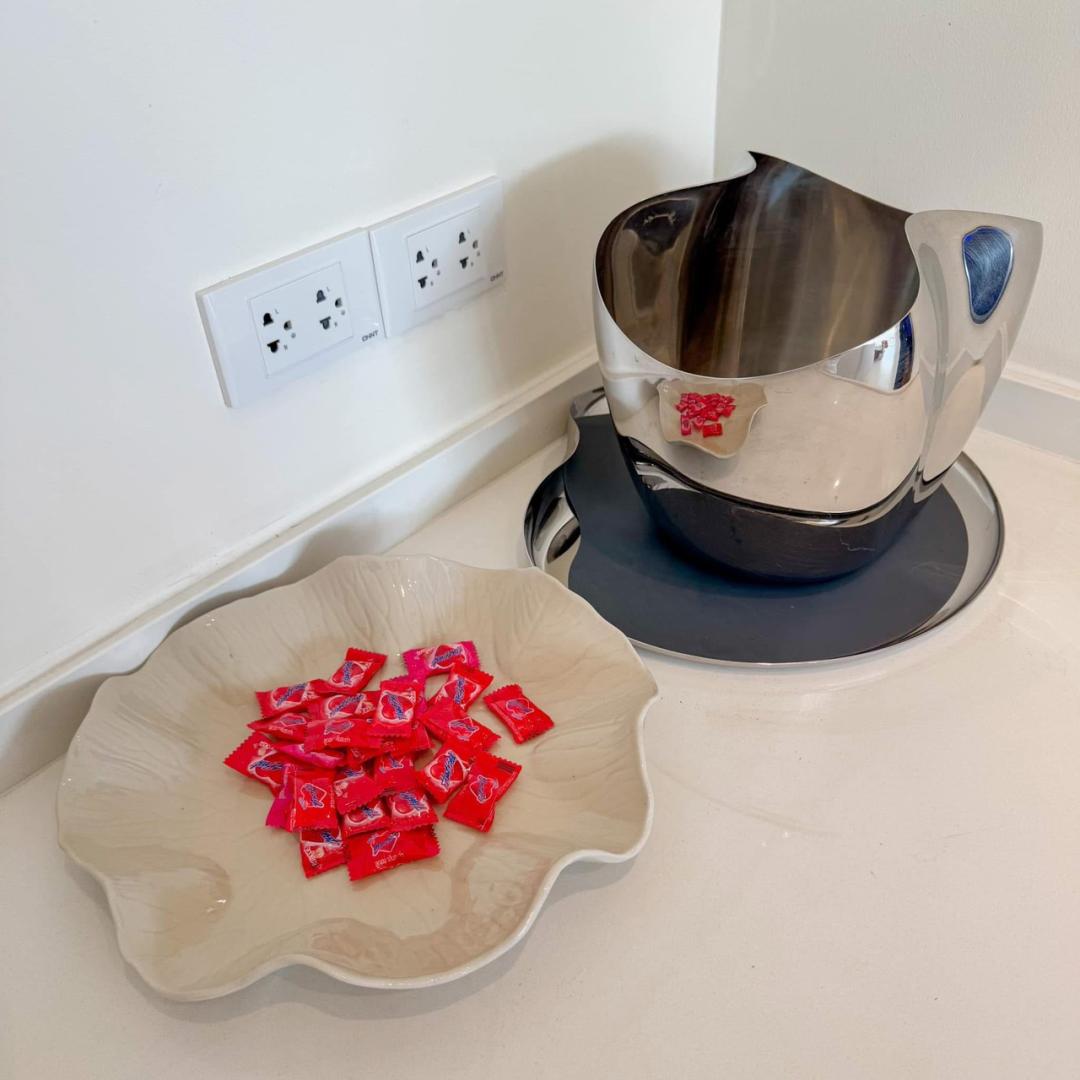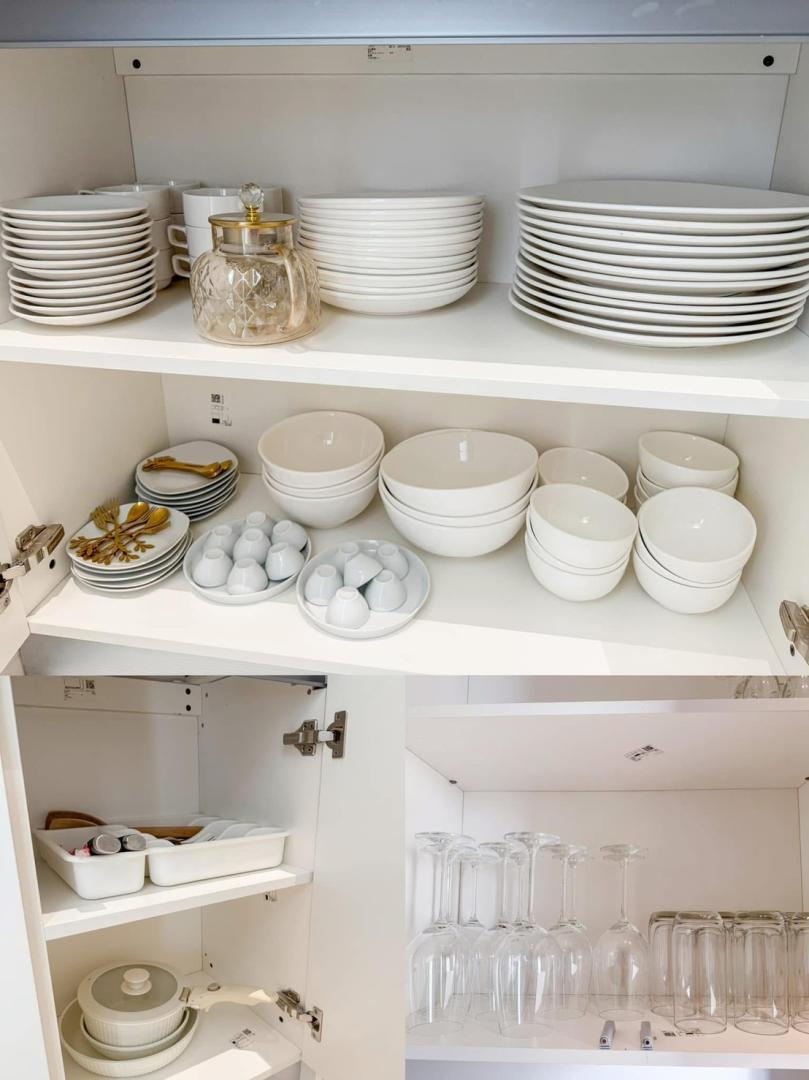 เตาไฟฟ้า หม้อ กระทะ จานชาม ช้อนส้อม แก้วน้ำ เขียง มีด หม้อหุงข้าว ไมโครเวฟ ถังน้ำแข็ง