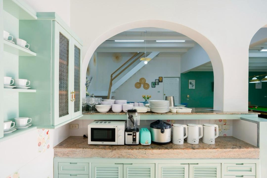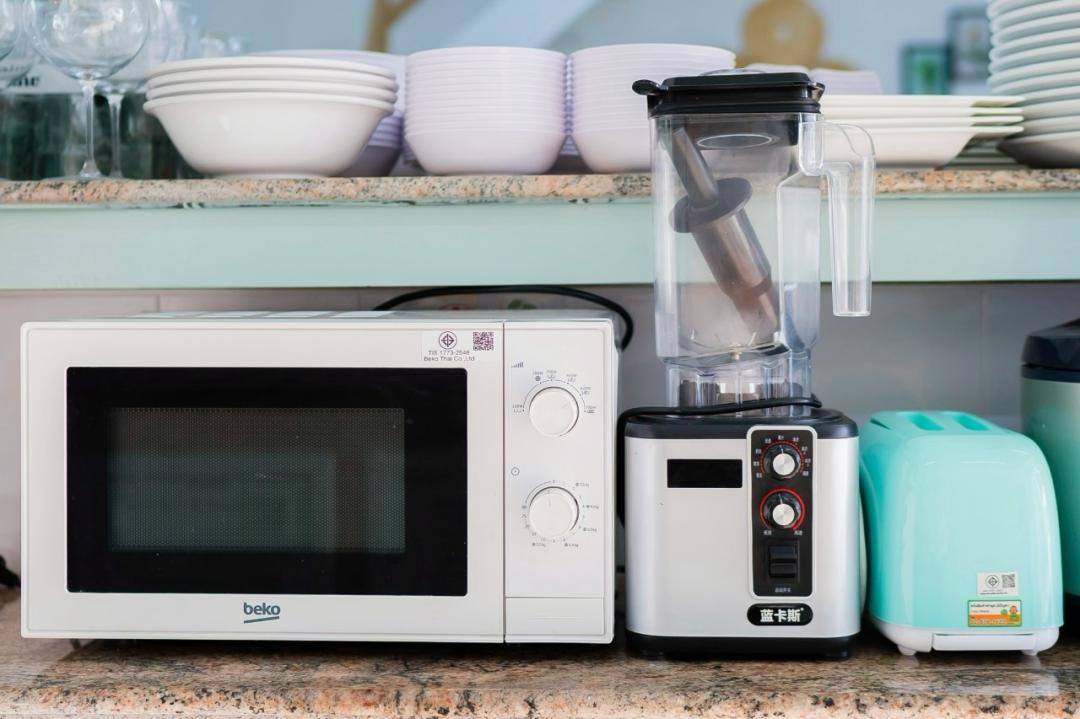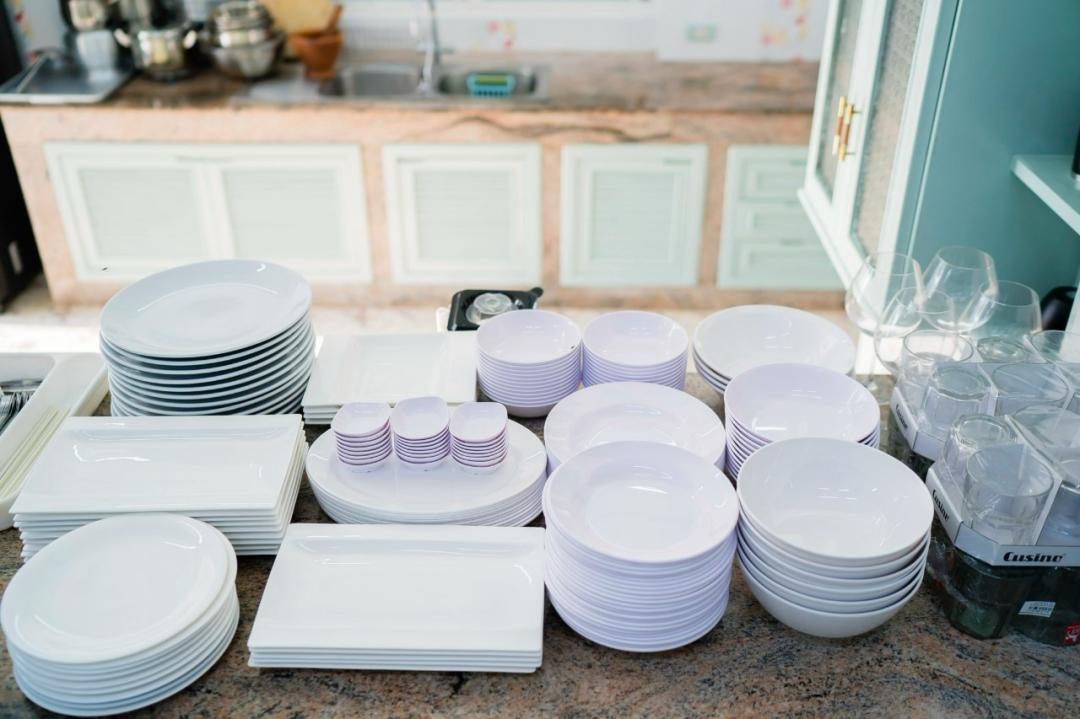 จาน ชาม ช้อน ส้อม แก้วเยติ แก้วไวน์ หม้อหุงข้าวเครื่องปั่น ไมโครเวฟ เครื่องปิ้งขนมปัง กาน้ำร้อน ครก สาก เขียง ซึ้ง และเตาปิ้งย่างบาร์บีคิว