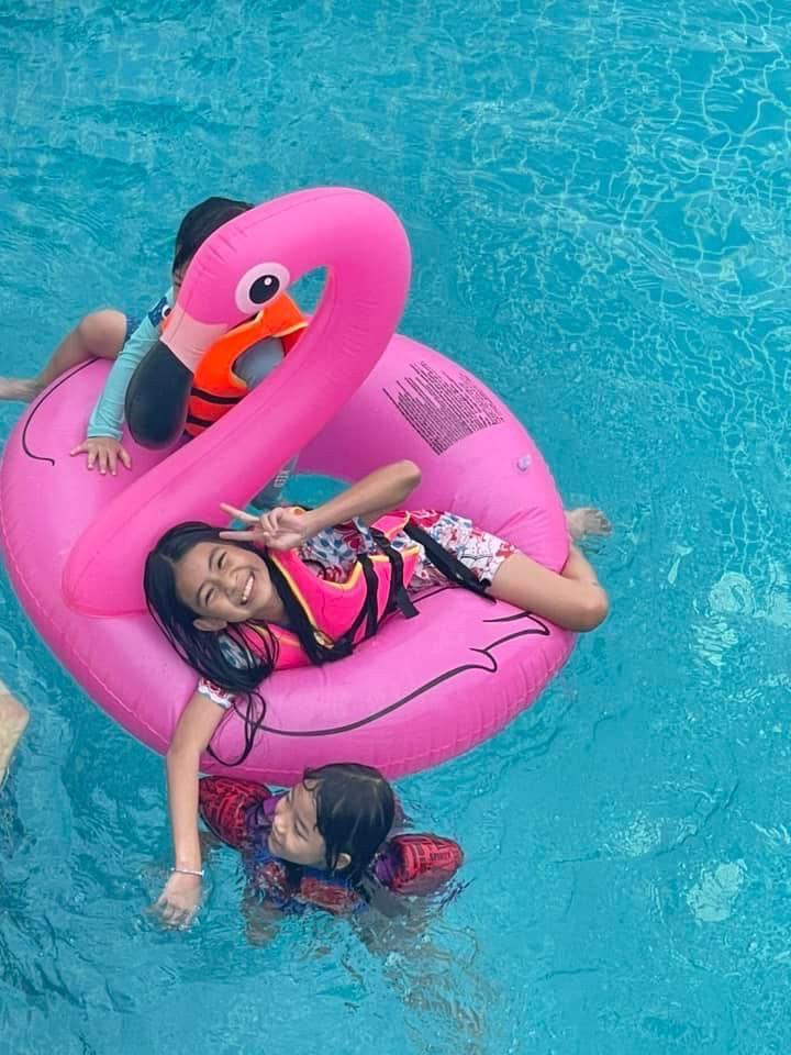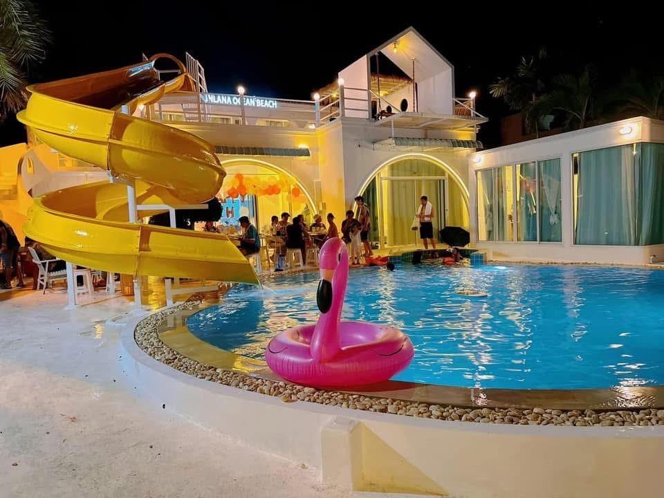 สระว่ายน้ำ สระเป็นรูปวงกลมกว้างยาว 10 * 8 เมตร ลึก 1.5 เมตร (ระบบคลอรีน)