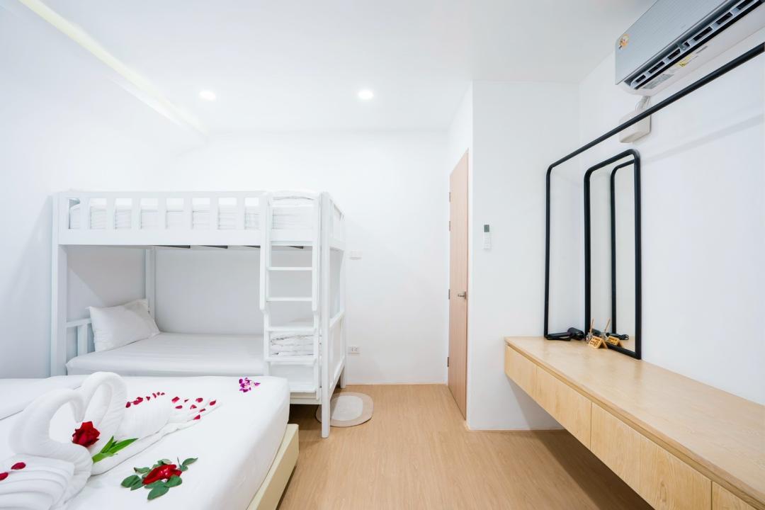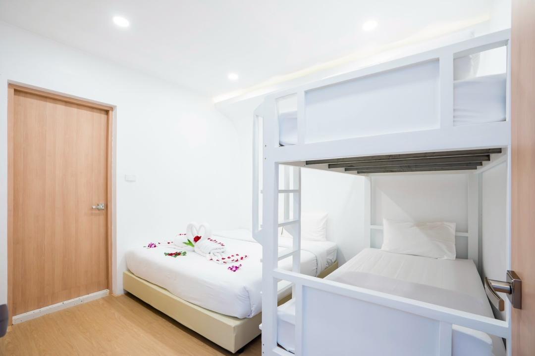 ห้อง 4 เตียง 6 ฟุต 1 เตียง และ เตียง 2 ชั้น 3.5 ฟุต 1 เตียง (มีห้องน้ำในตัว)