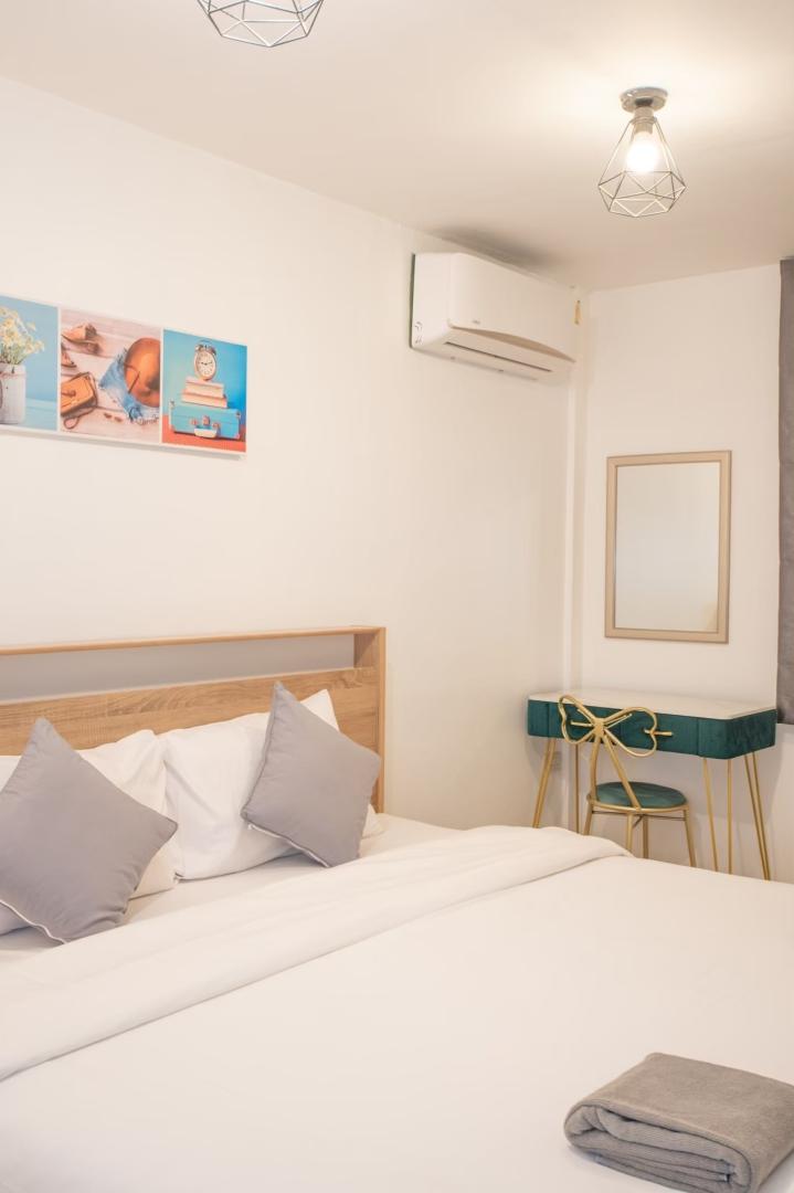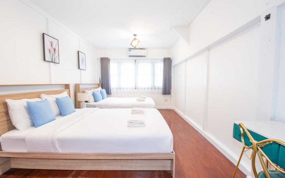 ห้อง 1-3 มี เตียง6 ฟุต 1 เตียง+ เตียง 3.5 ฟุต 1 เตียง